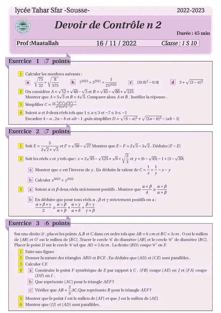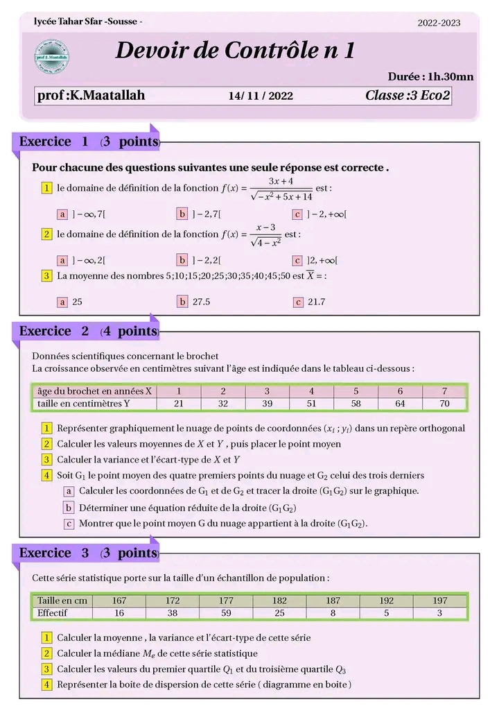 devoir de controle 2 math correction