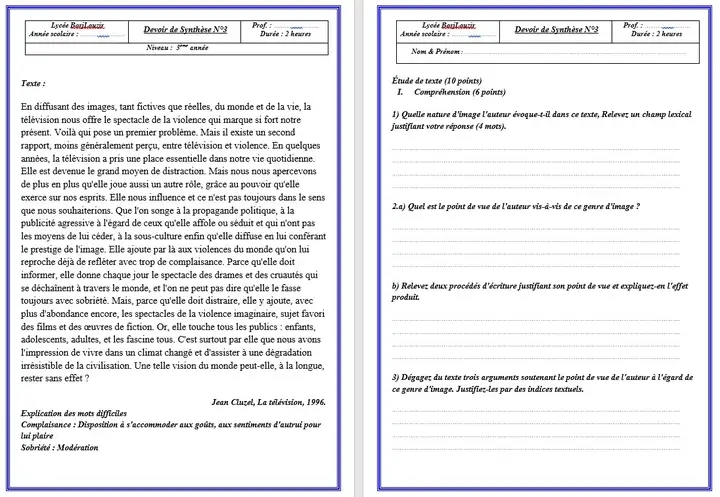Niveau: 3 ème année secondaire
