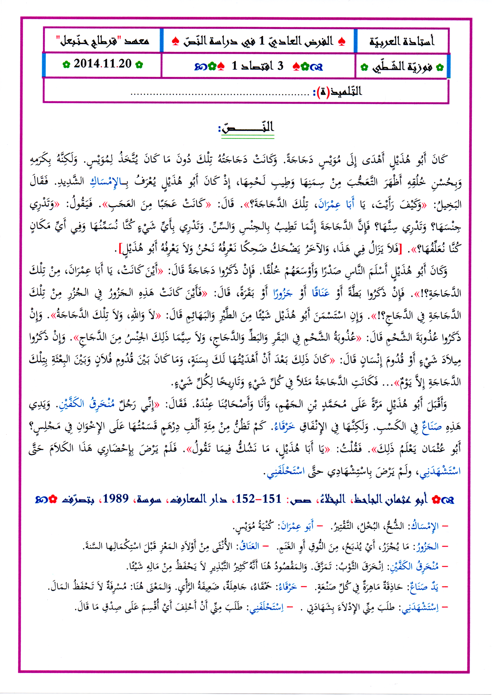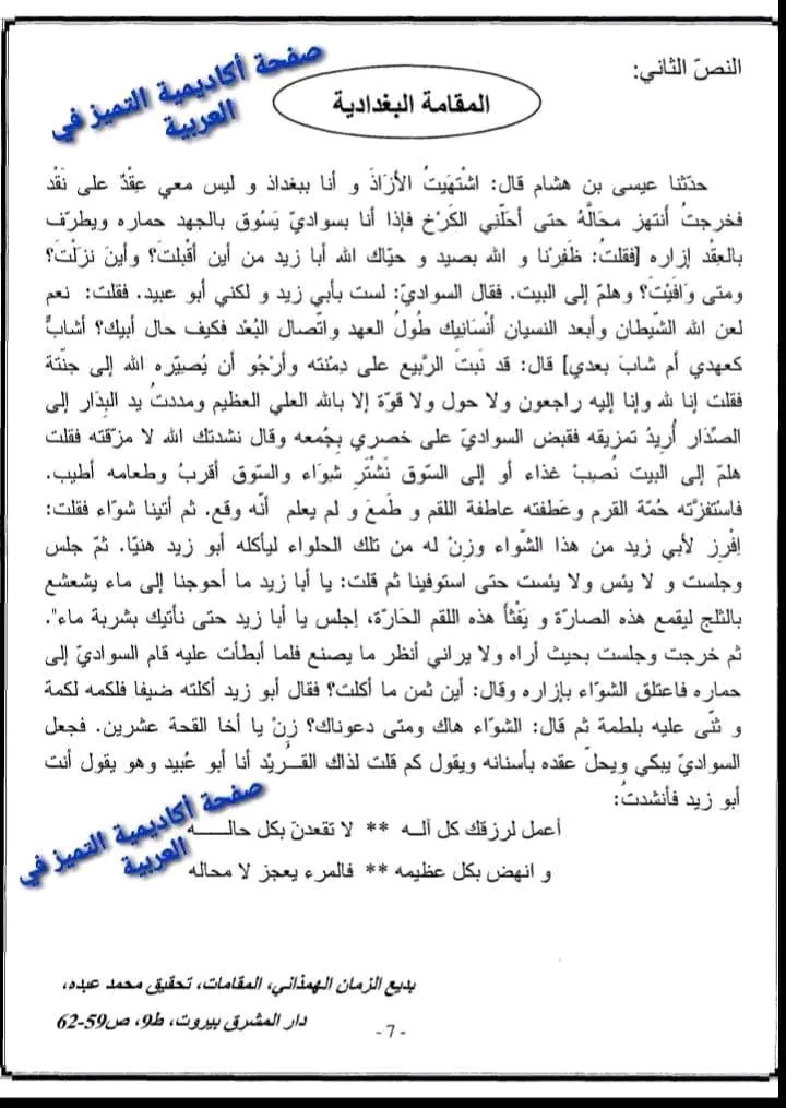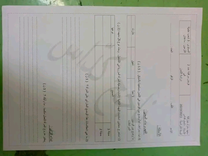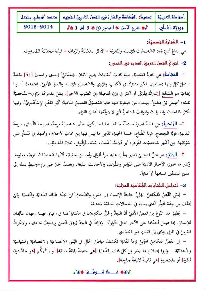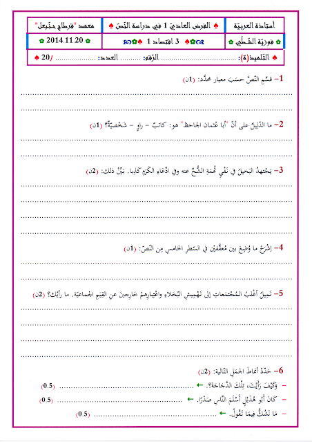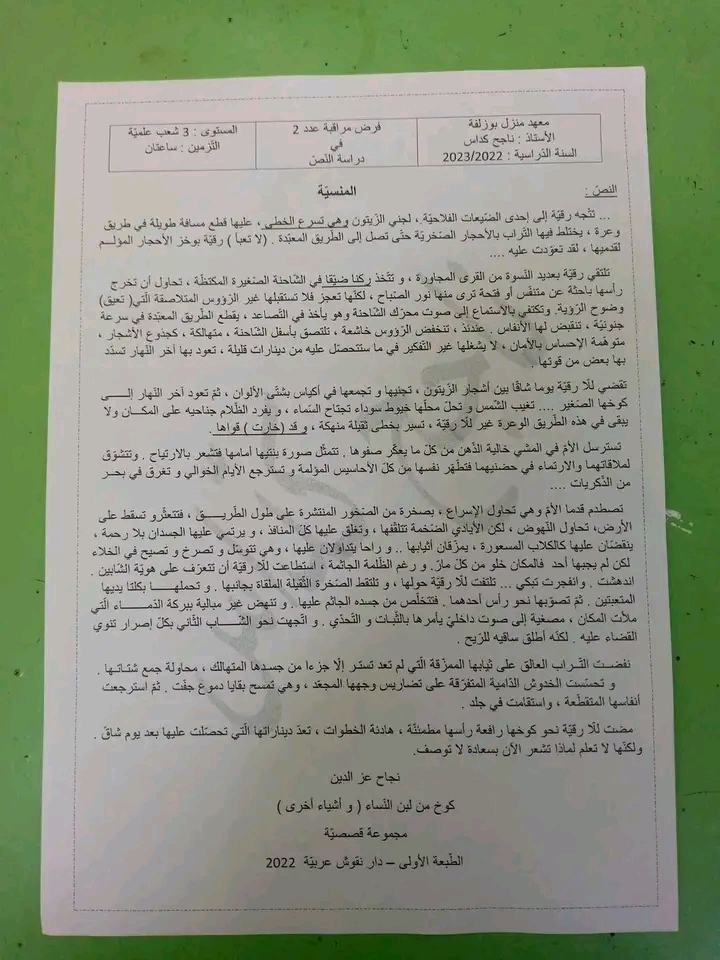 فرض تأليفي عدد 3 دراسة نص مع محاولة اصلاح