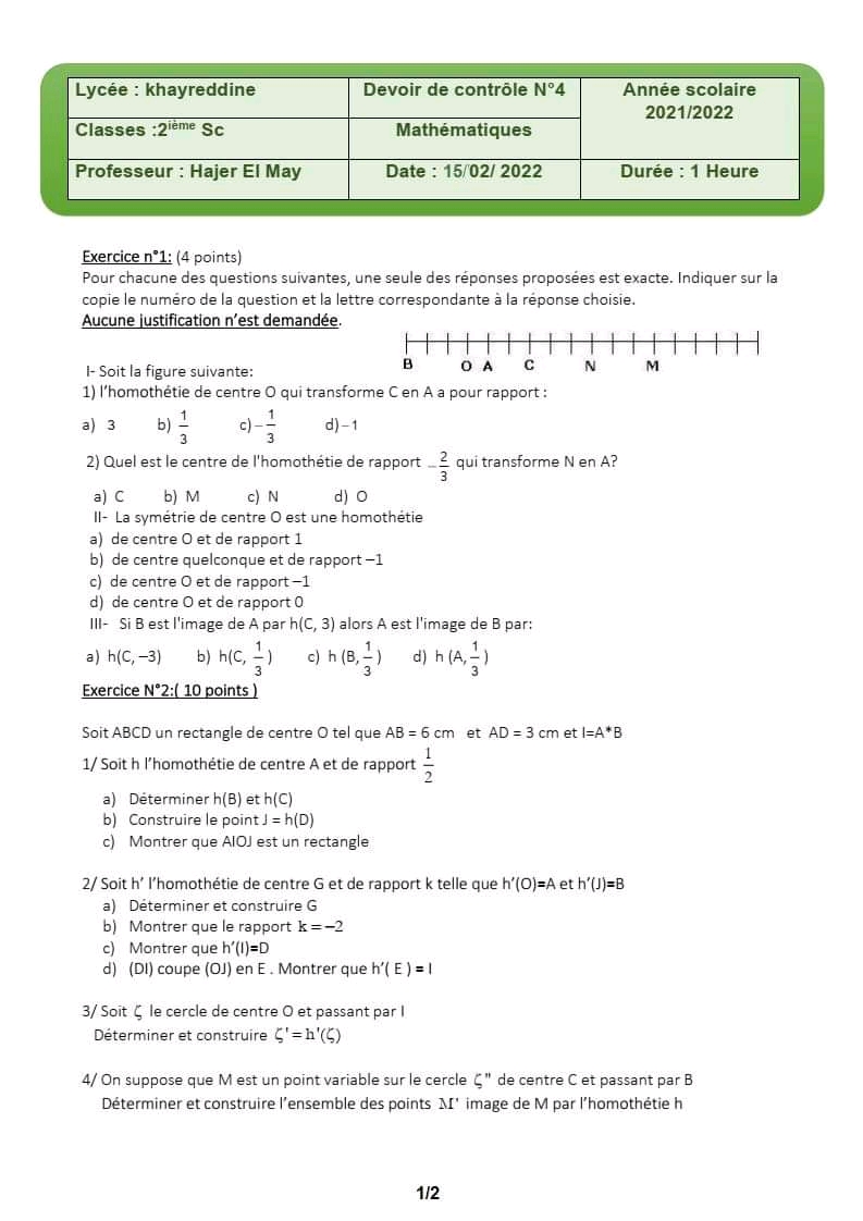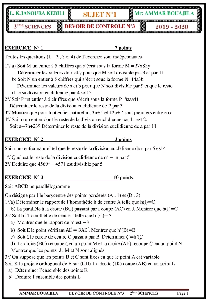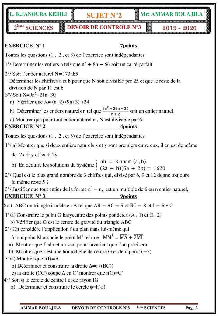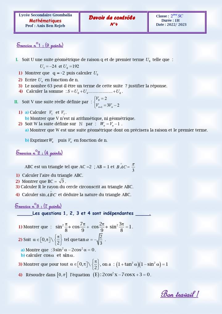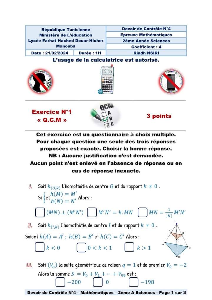 devoir de contrôle n°3 math