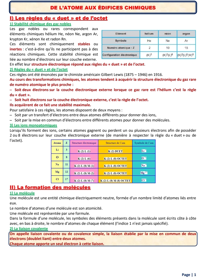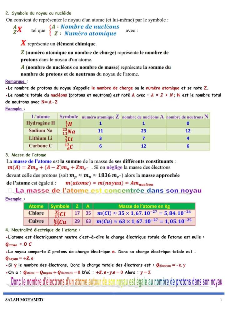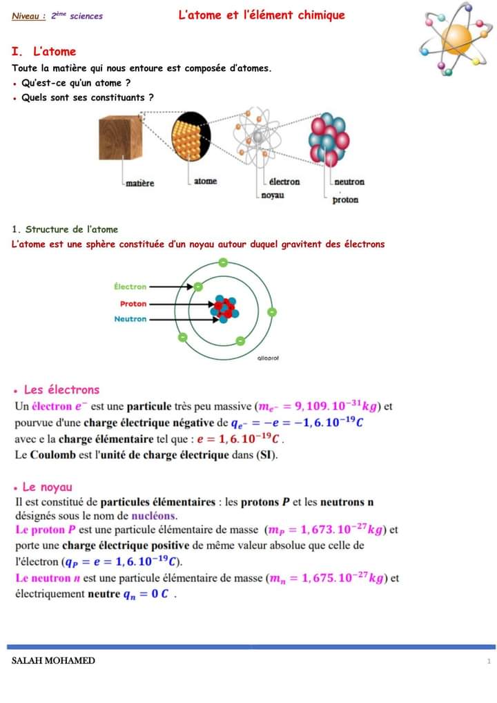 Atome et l'élément chimique - 2 ème Science