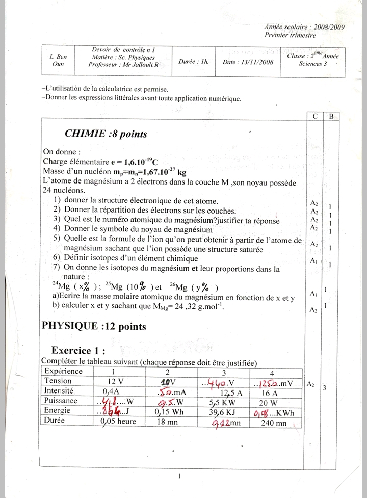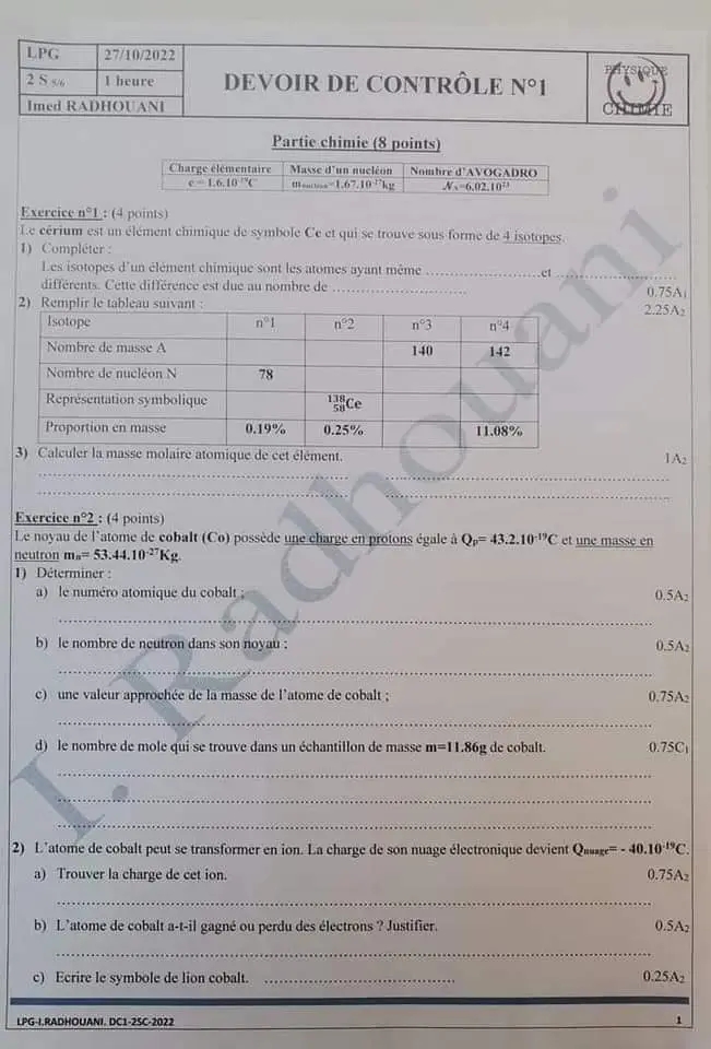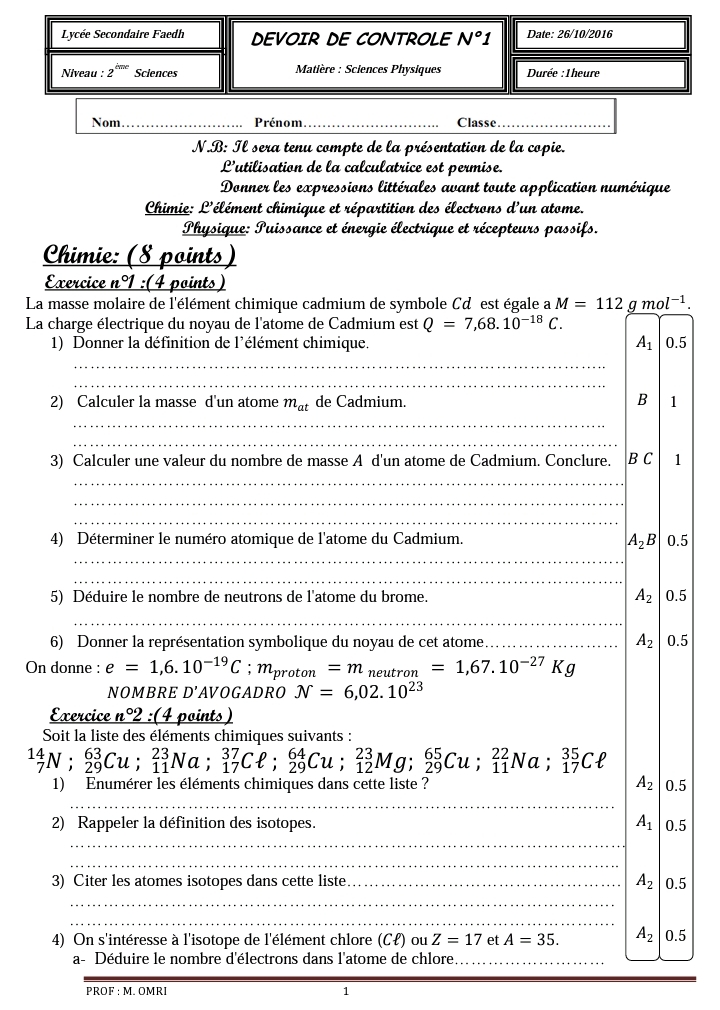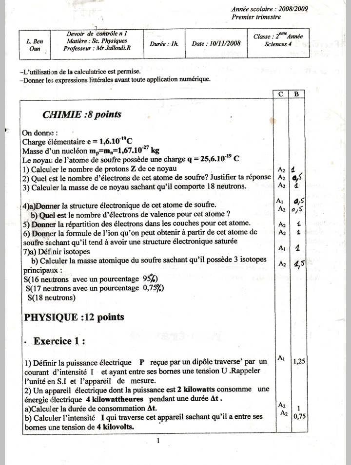 dvr control 1 de phy chimie physique