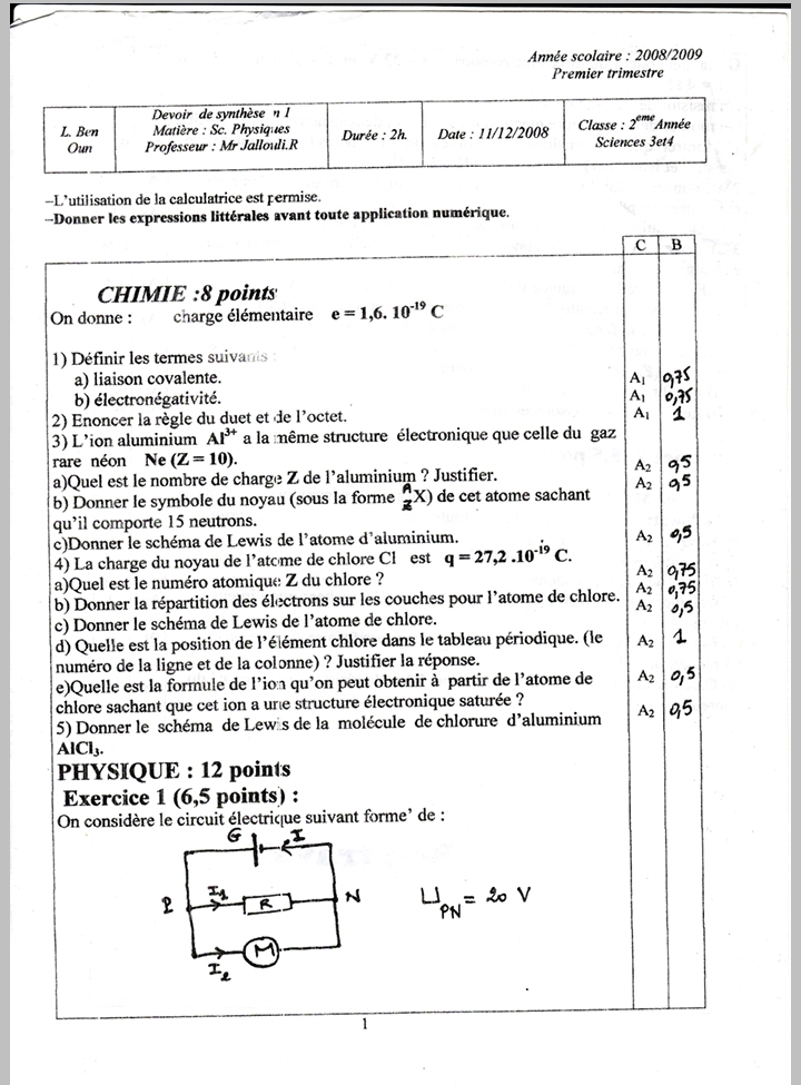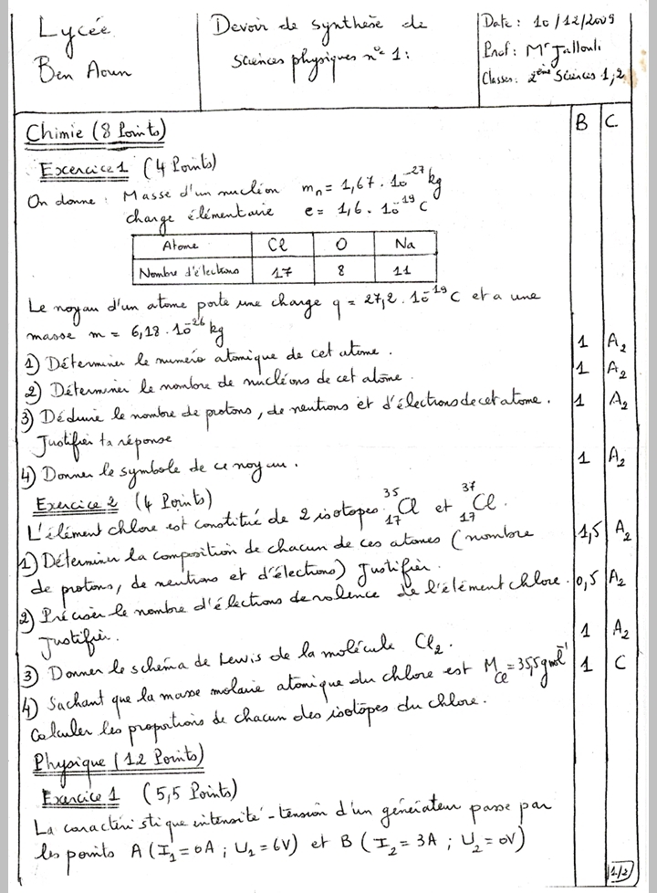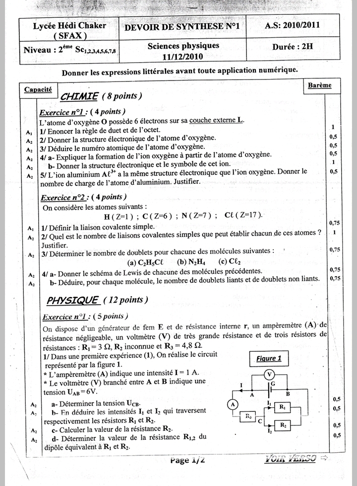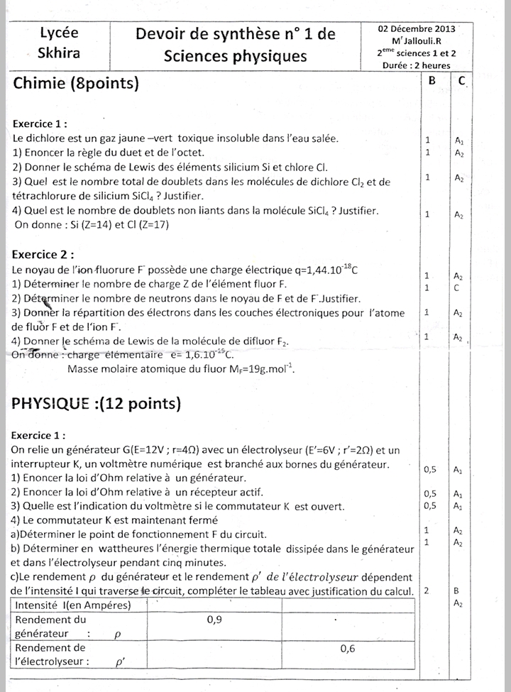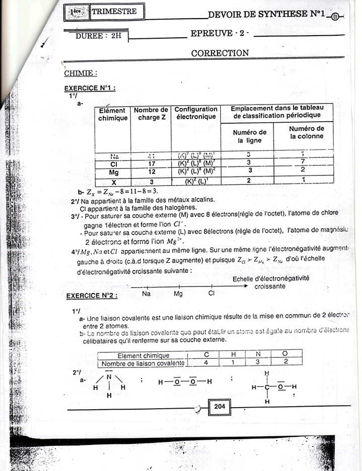 Devoir synthèse 1 2 Sc + correction