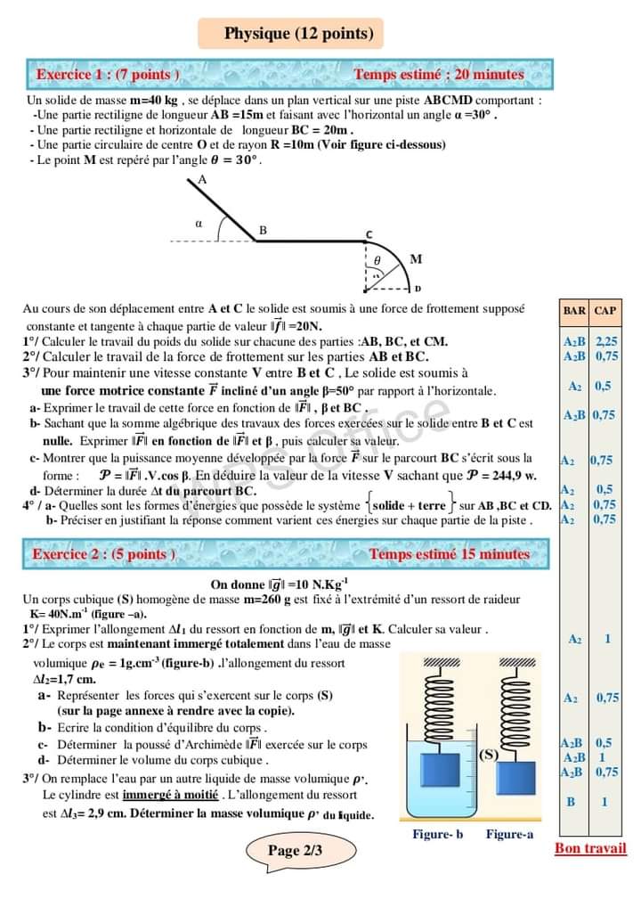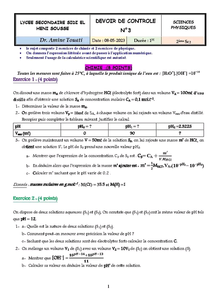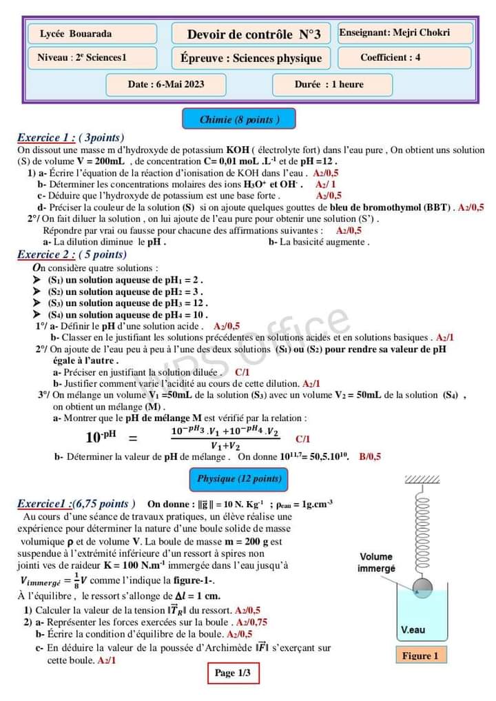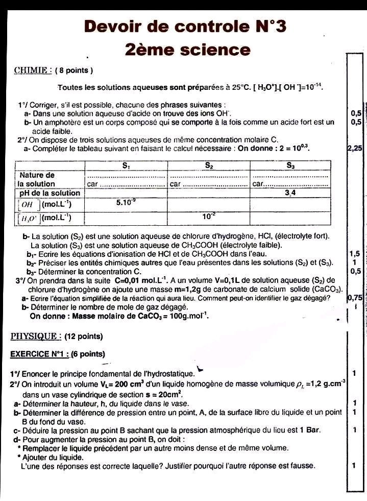 Devoir controle 3 physique
