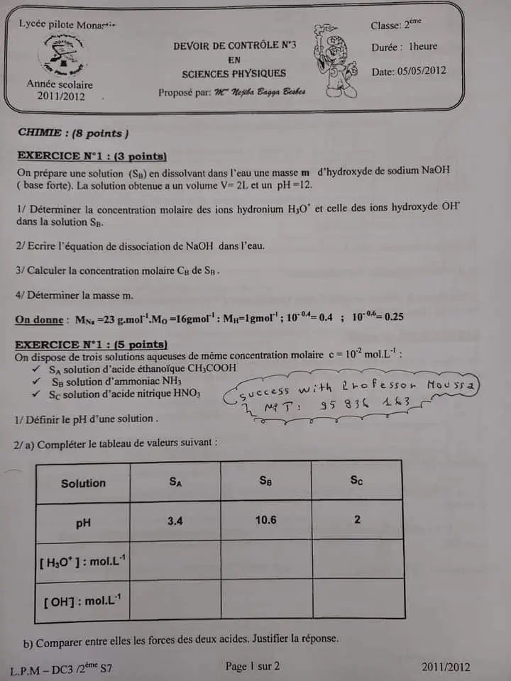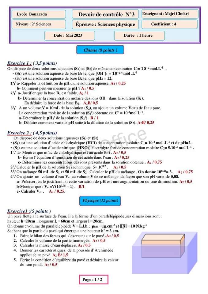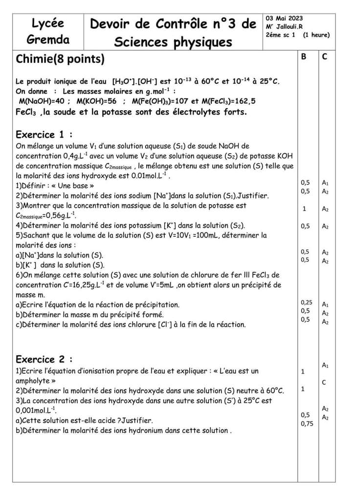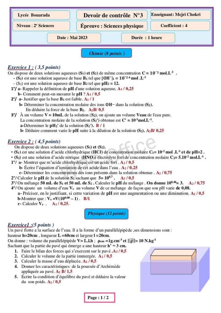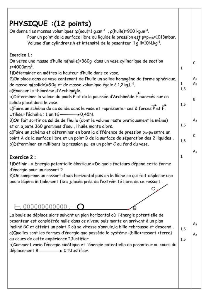 Devoir controle 3 physique