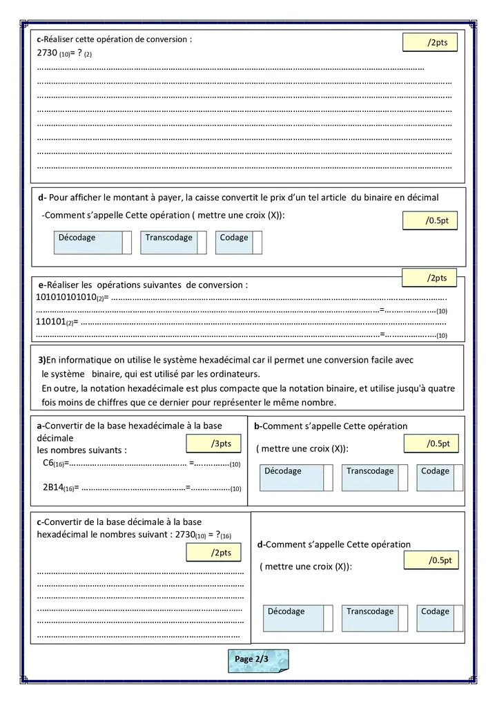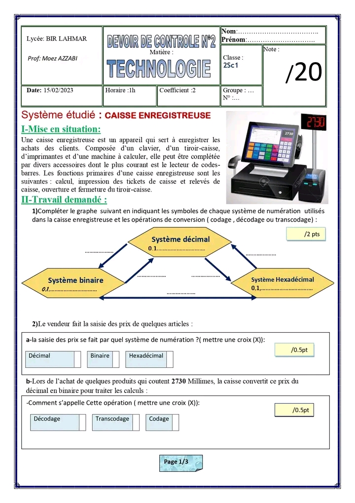 DEVOIR-DE-CONTRÖLE-N°2-Caisse enregistreuse-système de numération et codes -2AS-LYCEE-BIR-LAHMAR-AZZABI-MOEZ-2022-2023 + correction