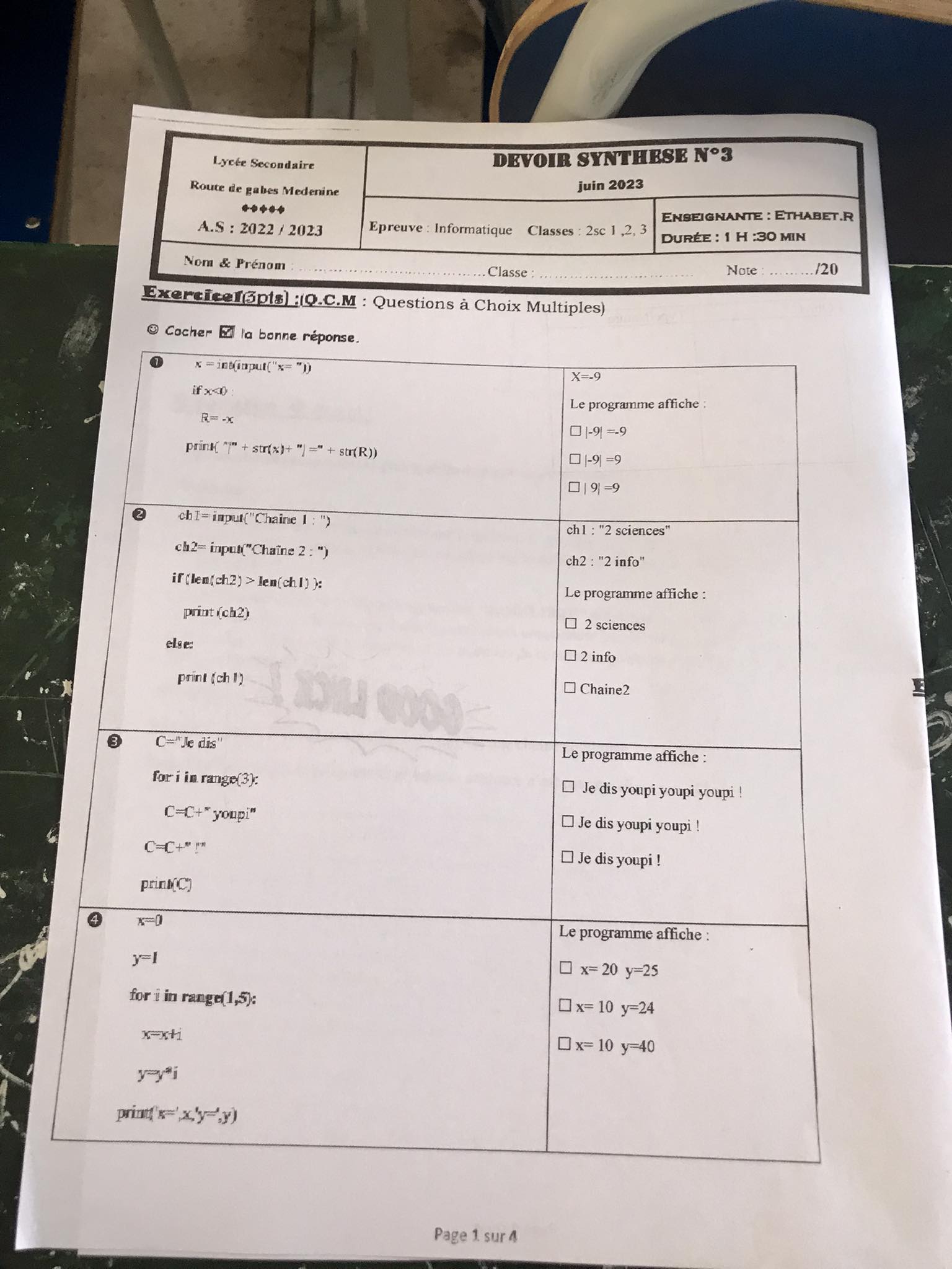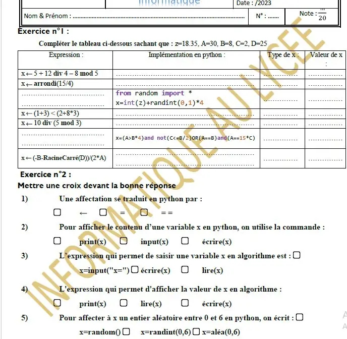 fonction prédéfini 2ème exercice