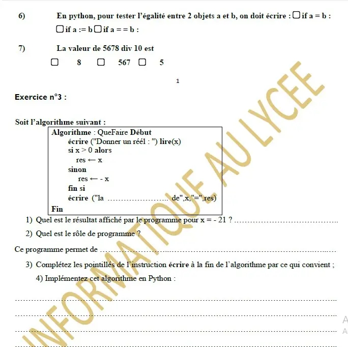 les fonctions prédéfinies algorithme et programmation