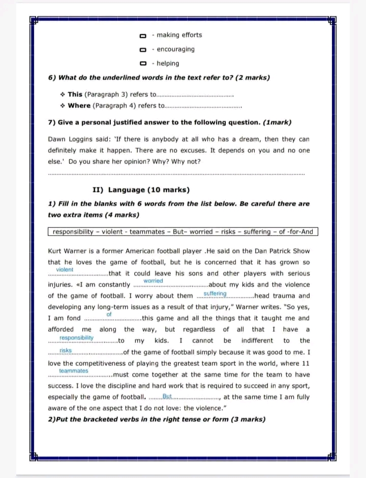 Correction exercice du devoir de contrôle n°2anglais