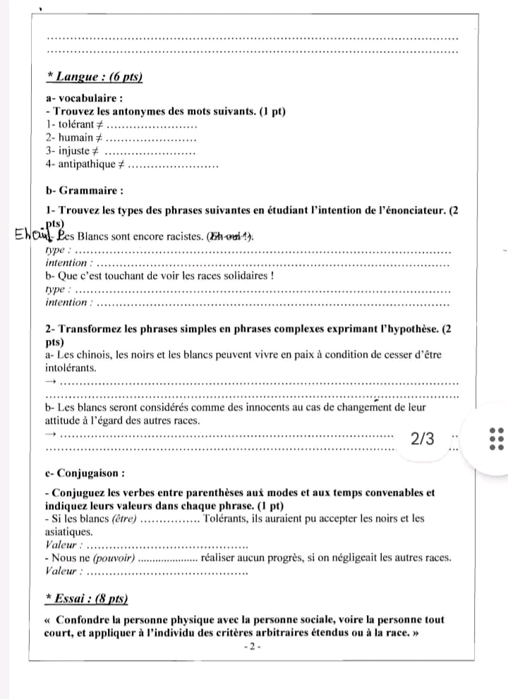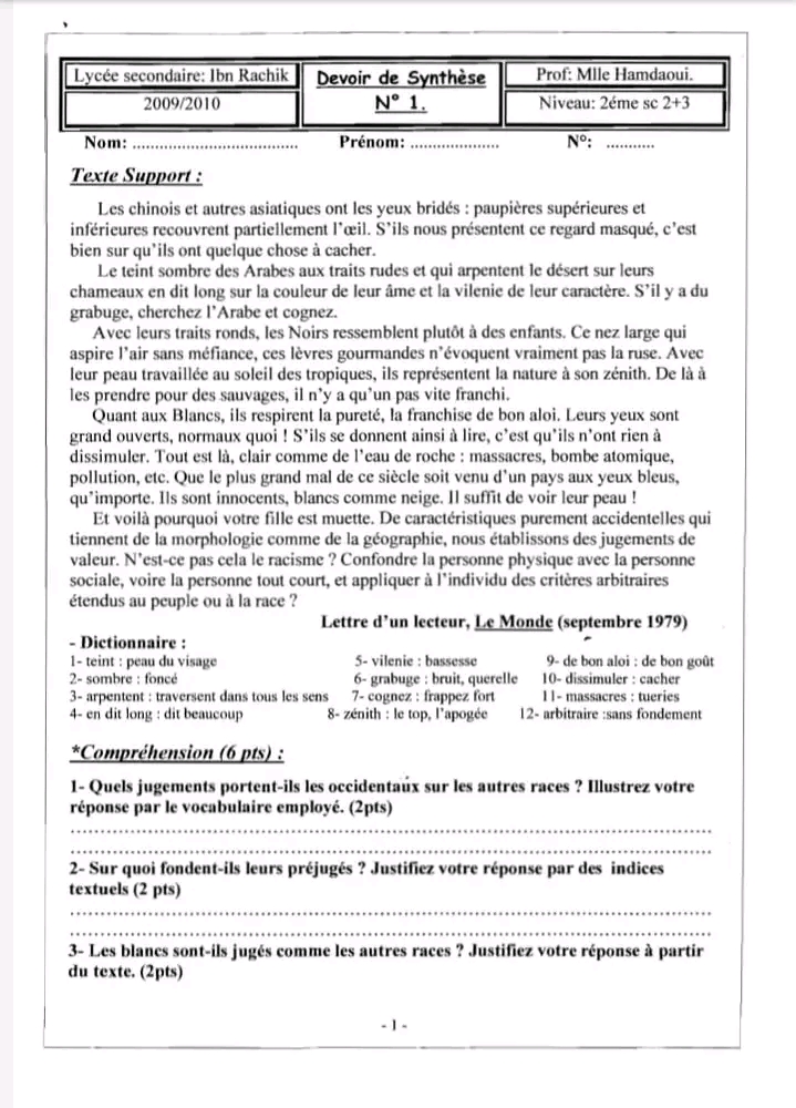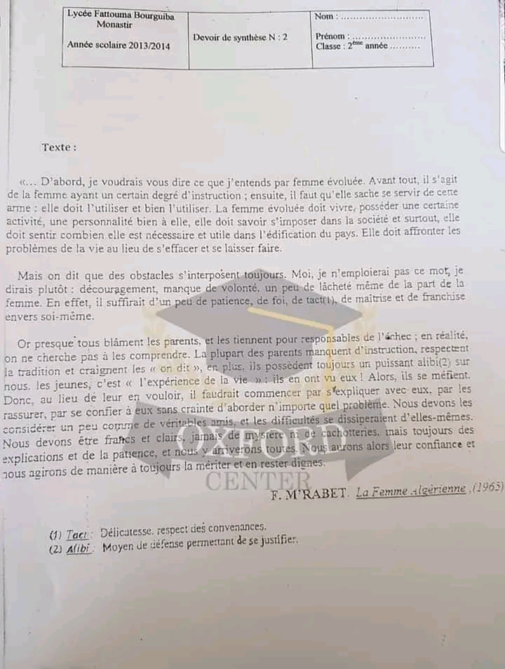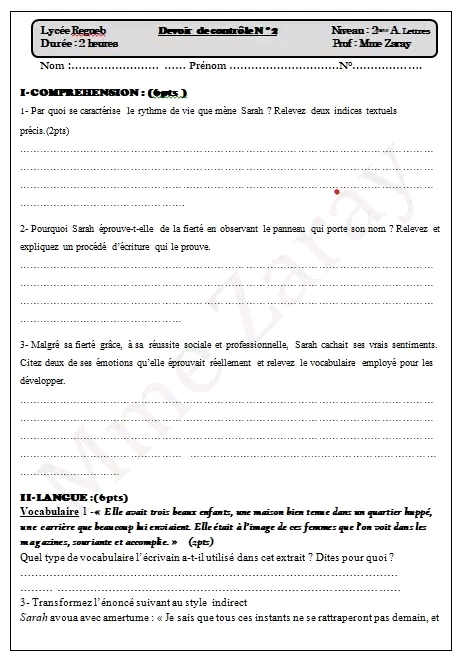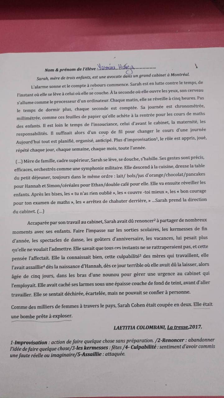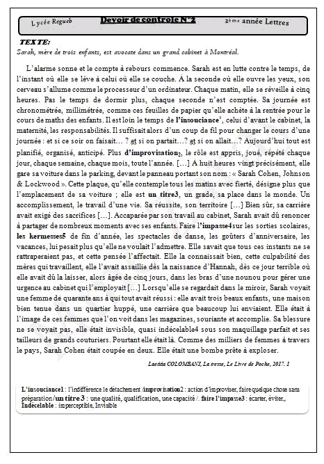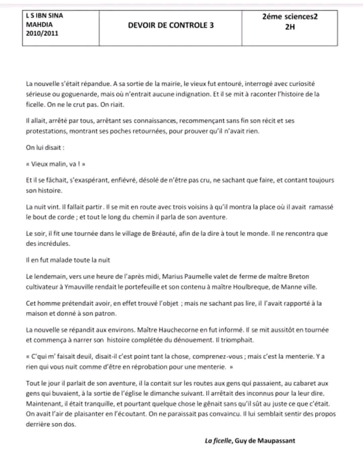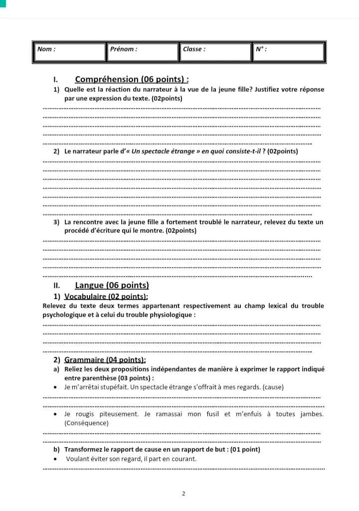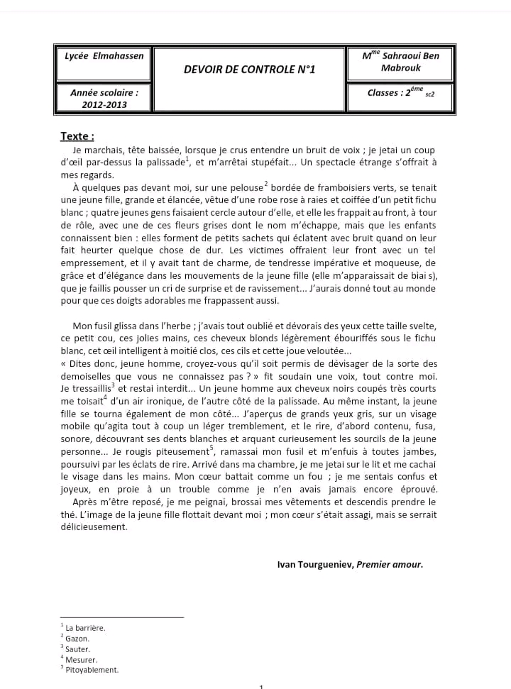 sujet traité Français module L'amour.