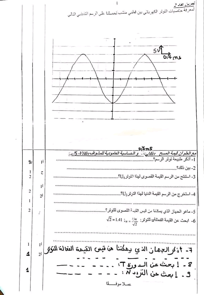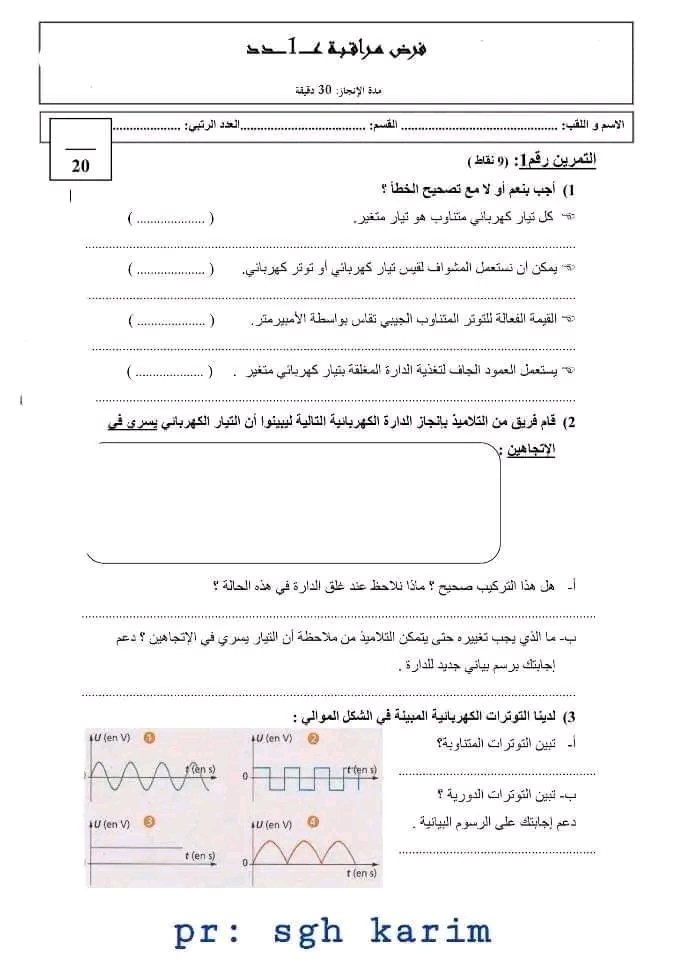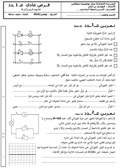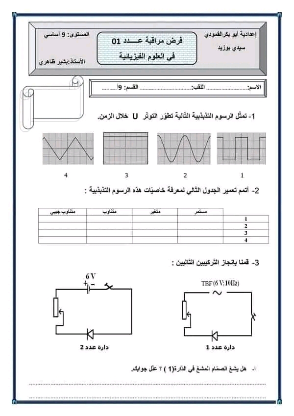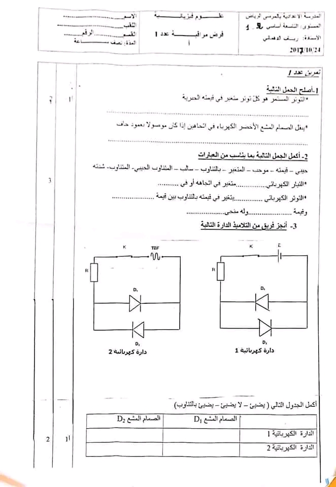 فرض مراقبة1 في الفيزياء 9 اساسي-محمد علي شبيكي