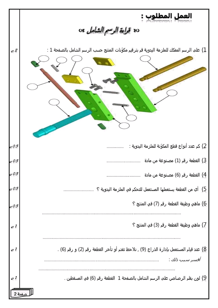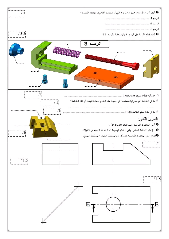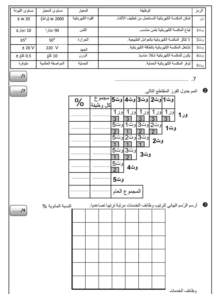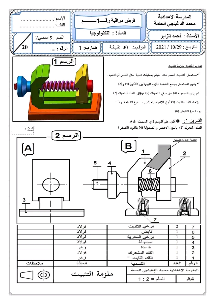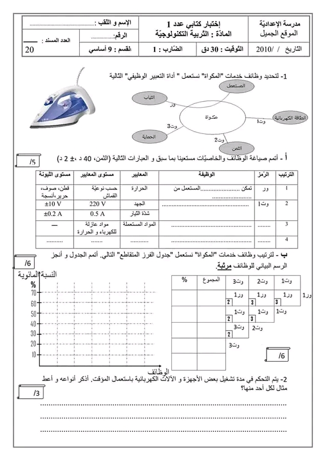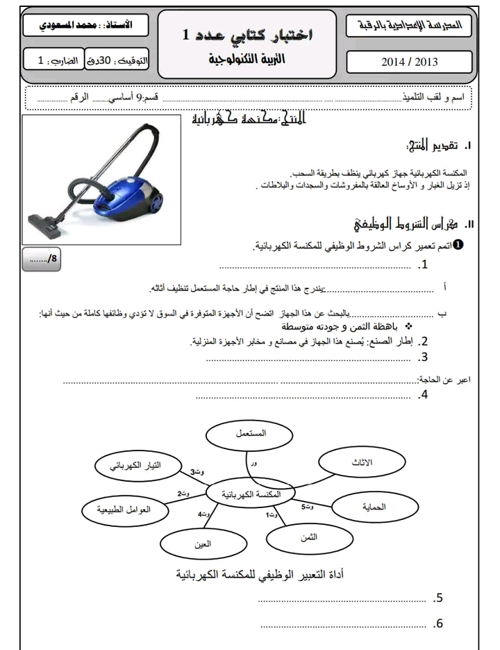 "إختبار كتابي عدد 1 في مادة التكنولوجيا"