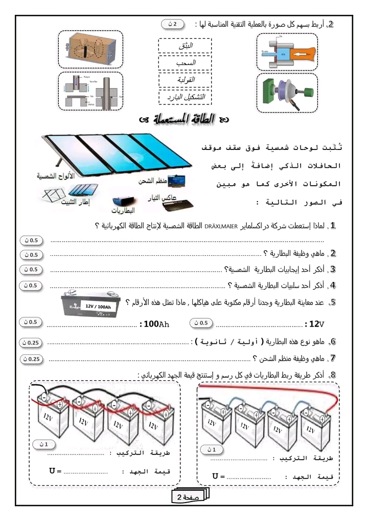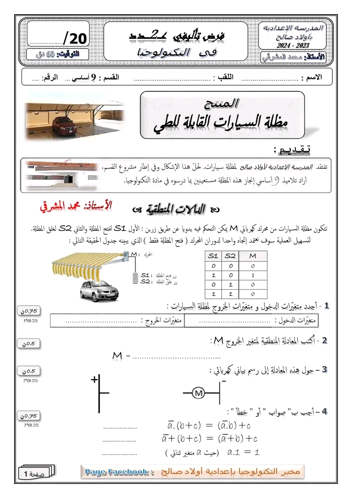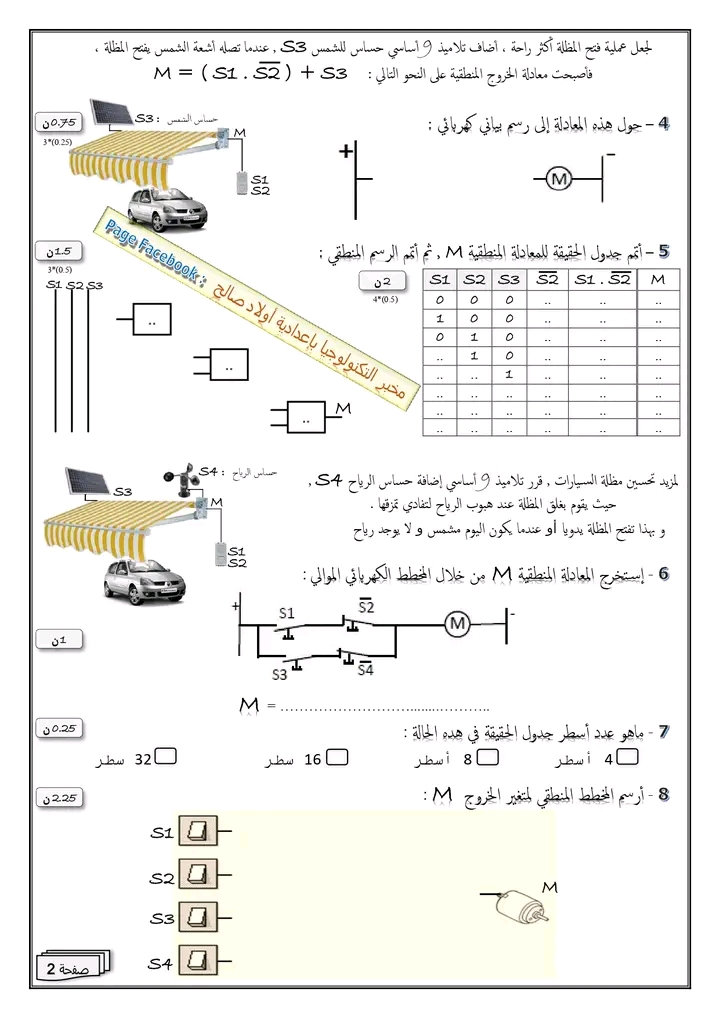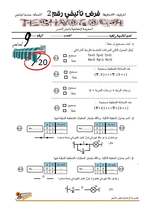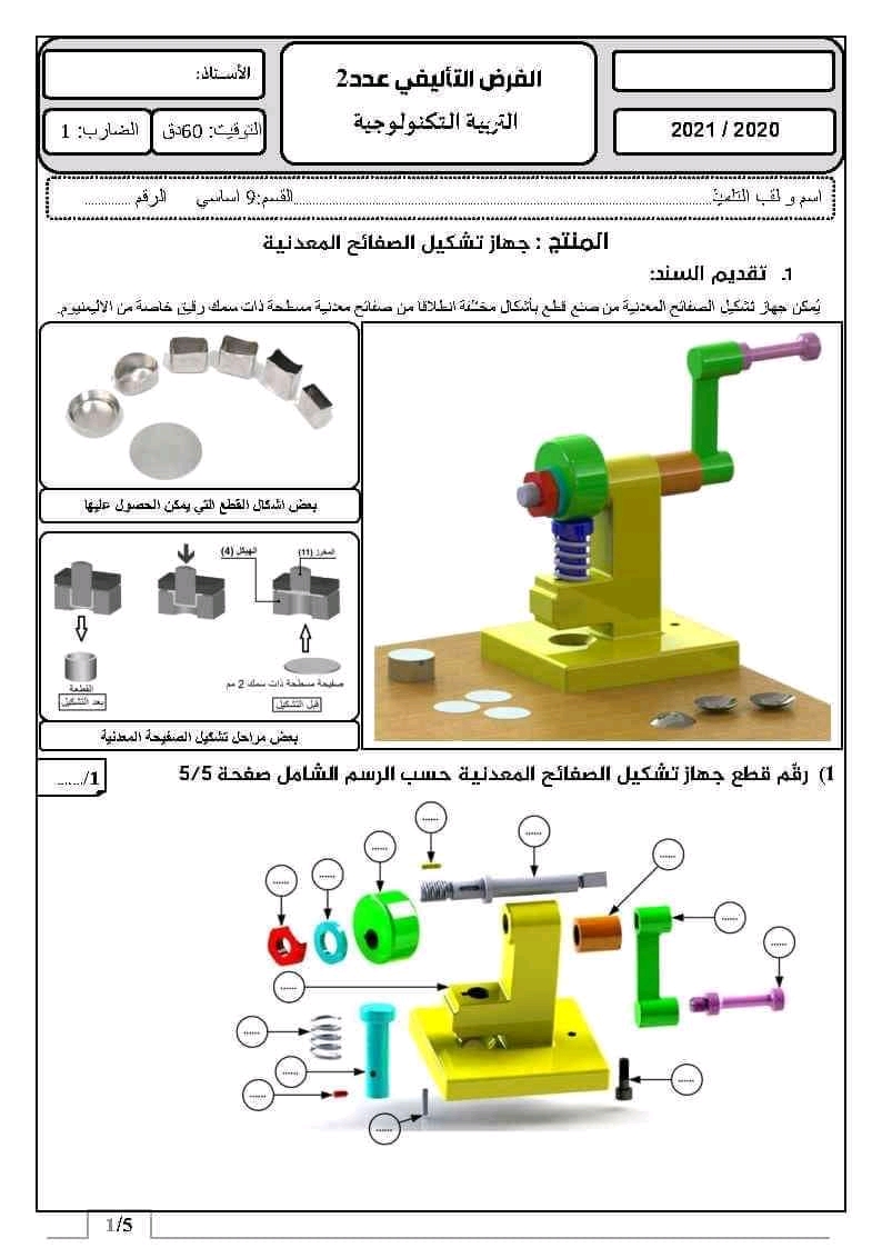 " فرض تأليفي عدد 2 في مادة التكنولوجيا "