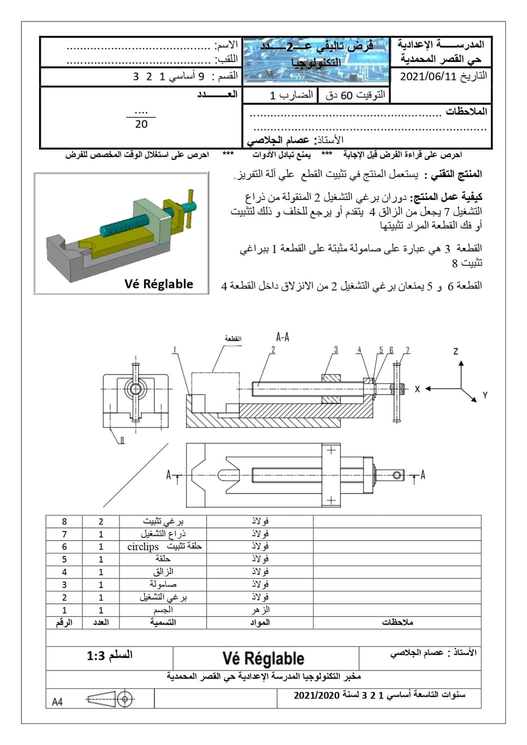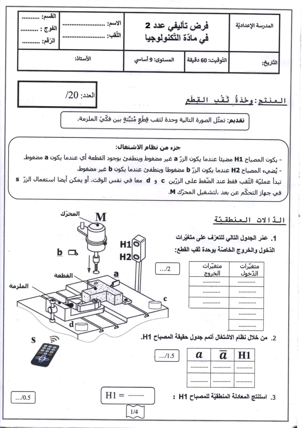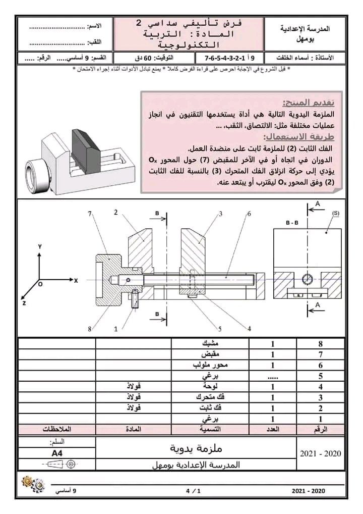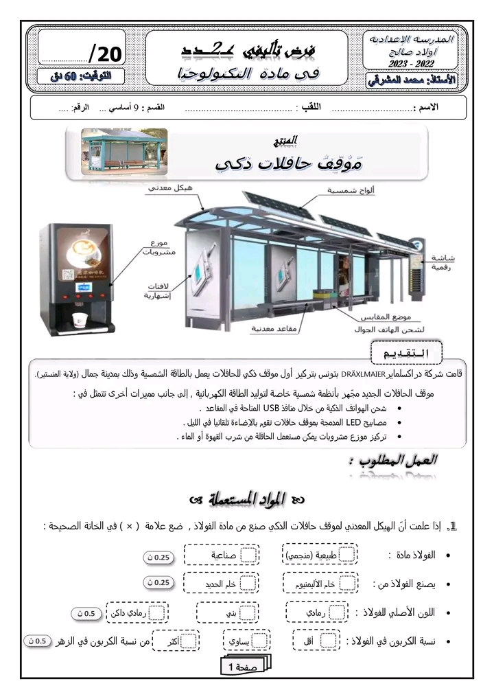 " فرض تأليفي عدد 2 في مادة التكنولوجيا "