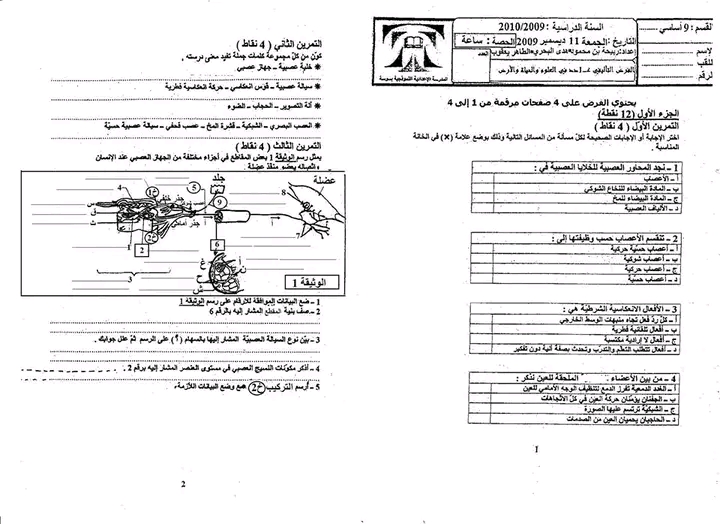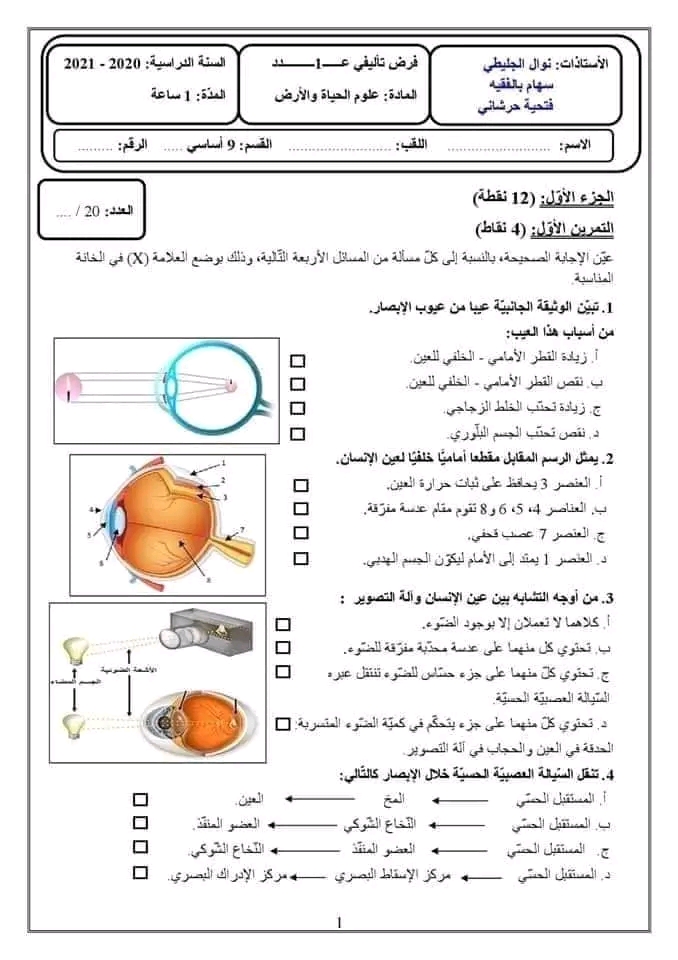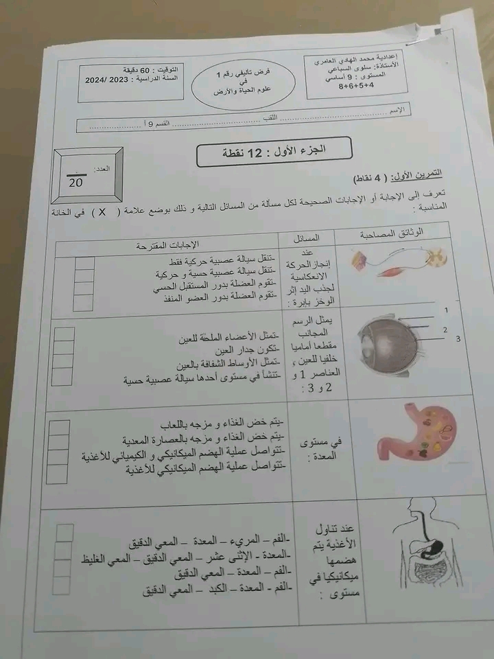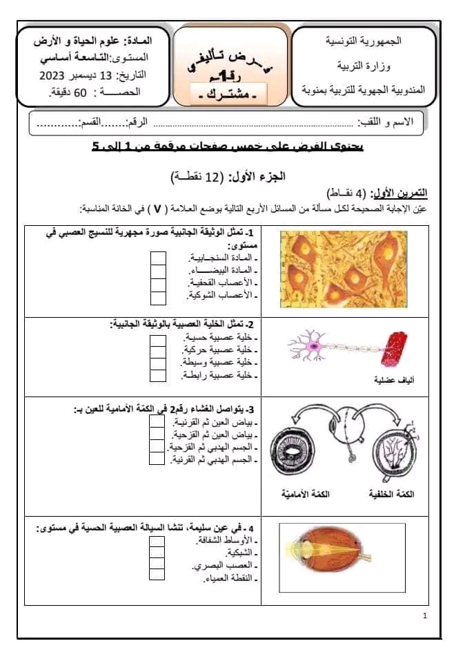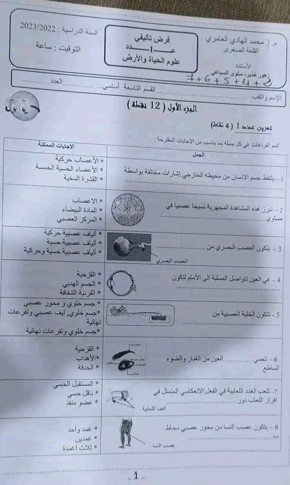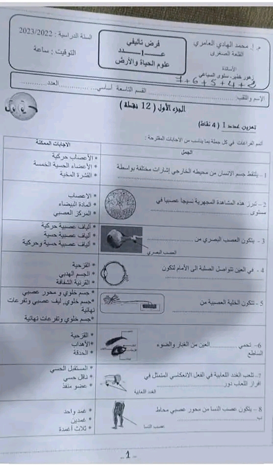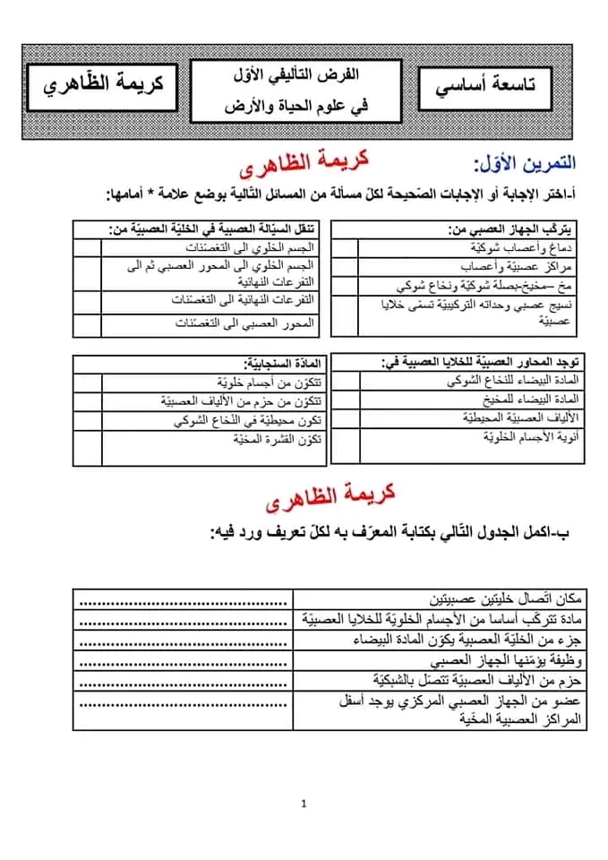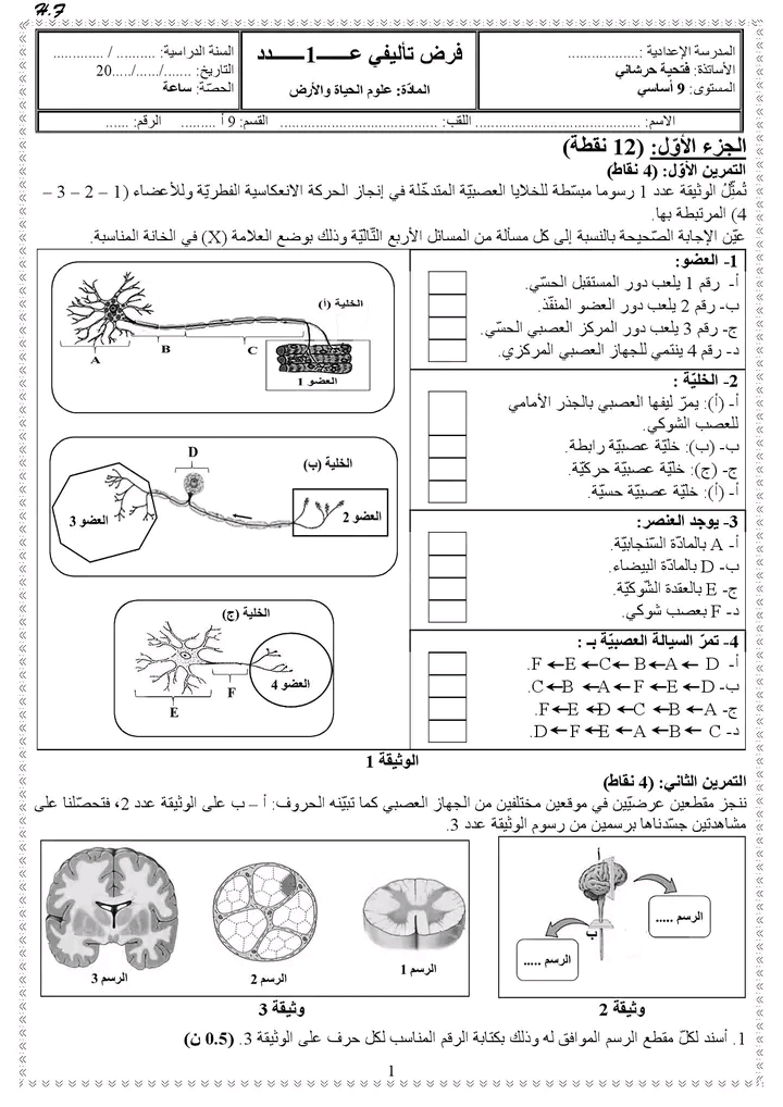 فرض تأليفي رقم 1 في علوم الحياة و الأرض تاسعة لاستاذة علوم الحياة و الأرض سلوى السباعي 🥰