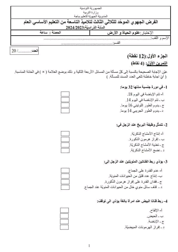 علوم الأرض و الحياة تاسعة أساسي