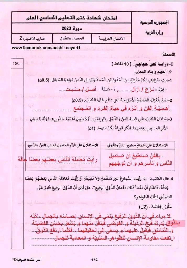 الأسئلة تحتمل إجابات أخرى صائبة .