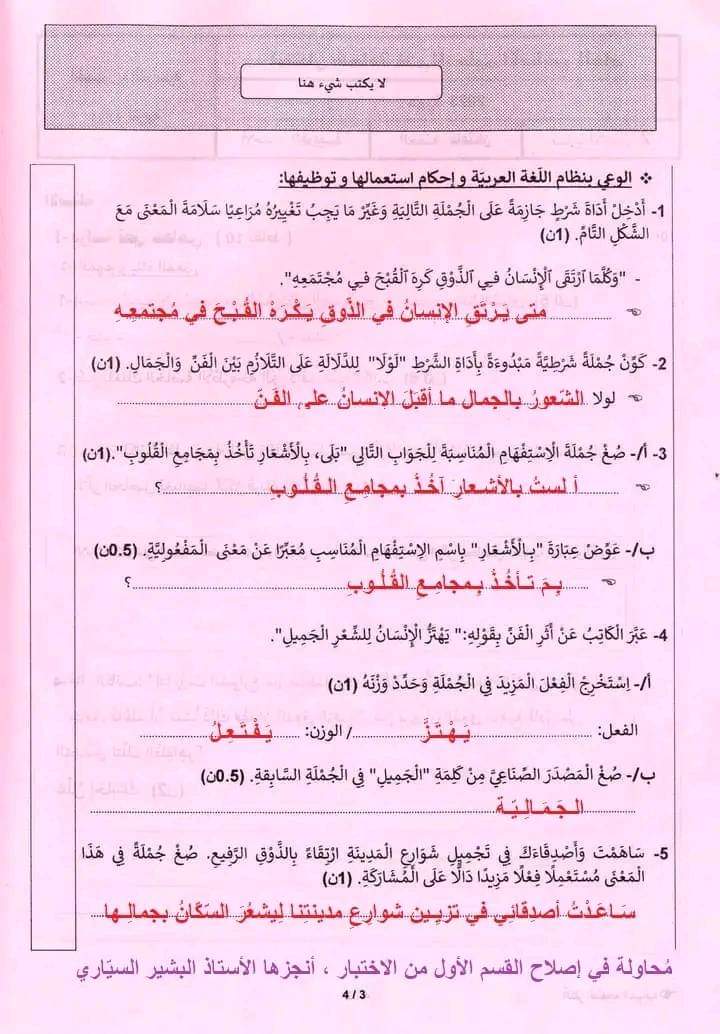 مقترح إصلاح للقسم الأول من الاختبار