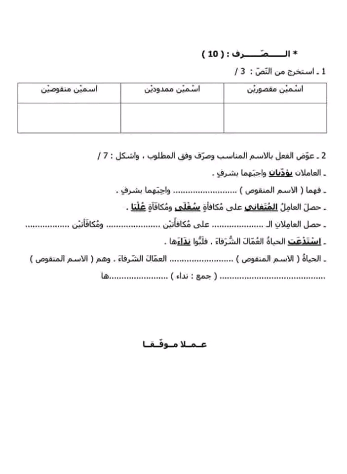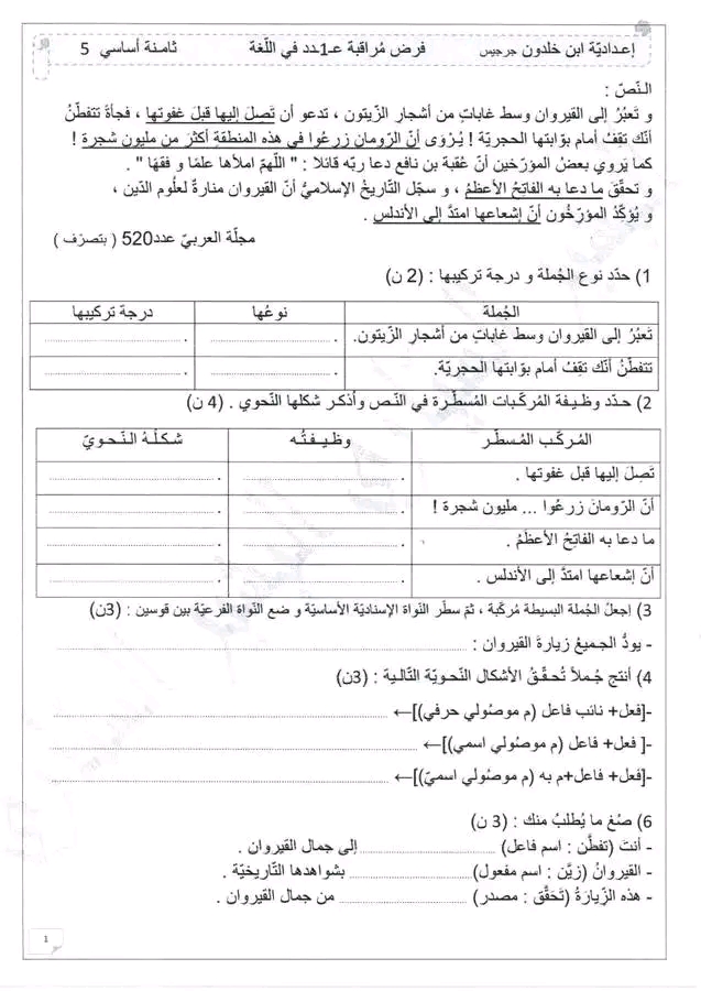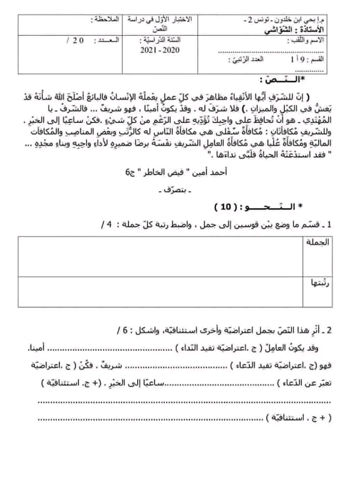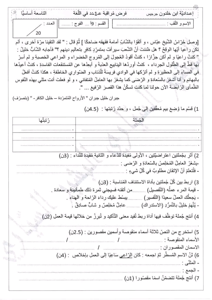 الثامنة و التاسعة أساسيا : اختباران في اللغة مع الإصلاح