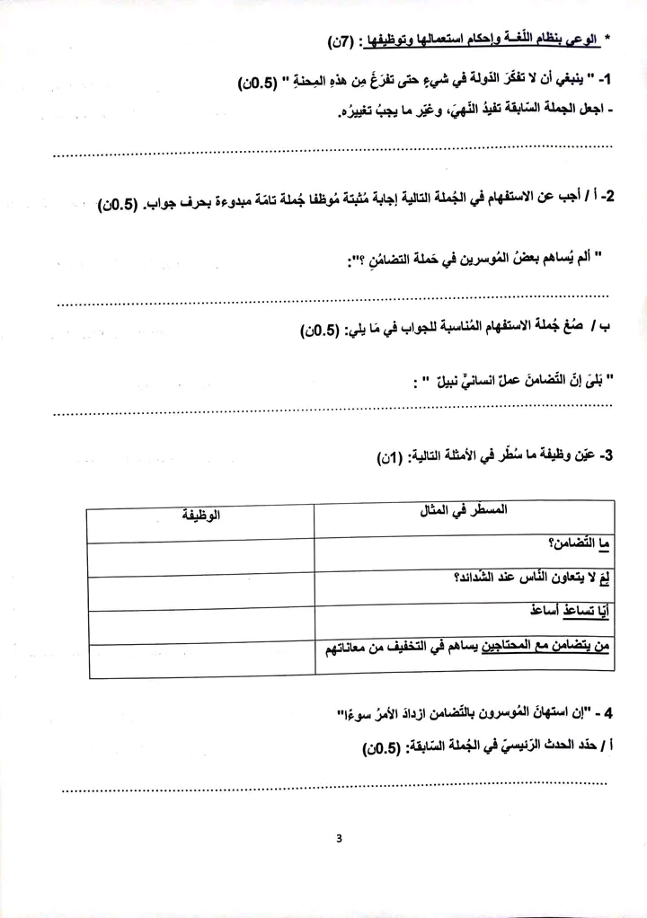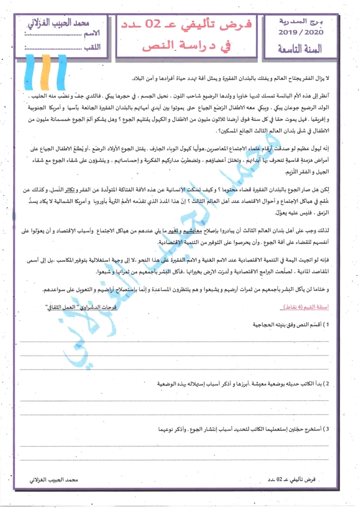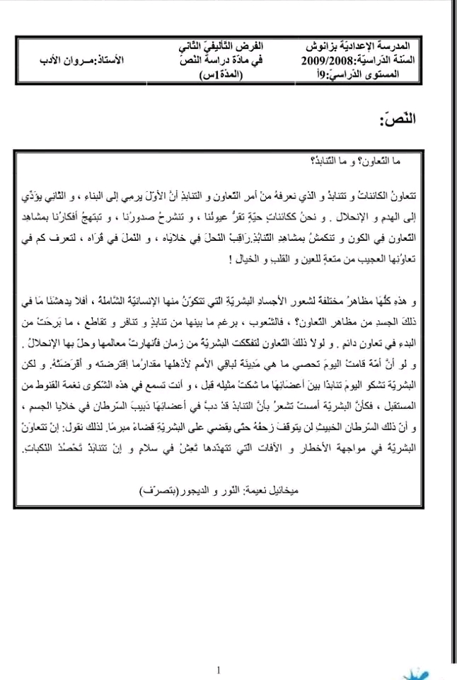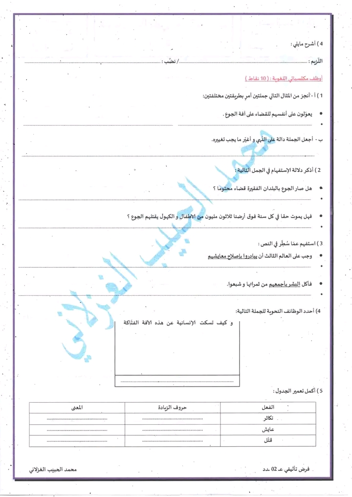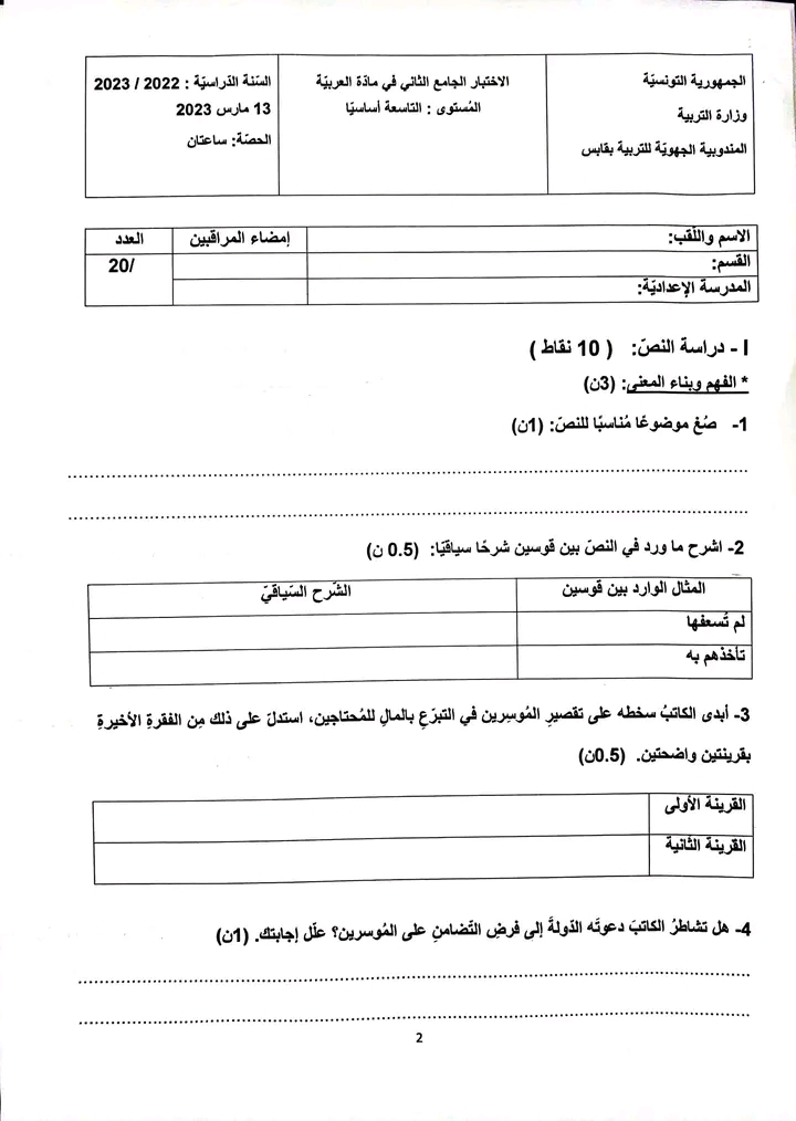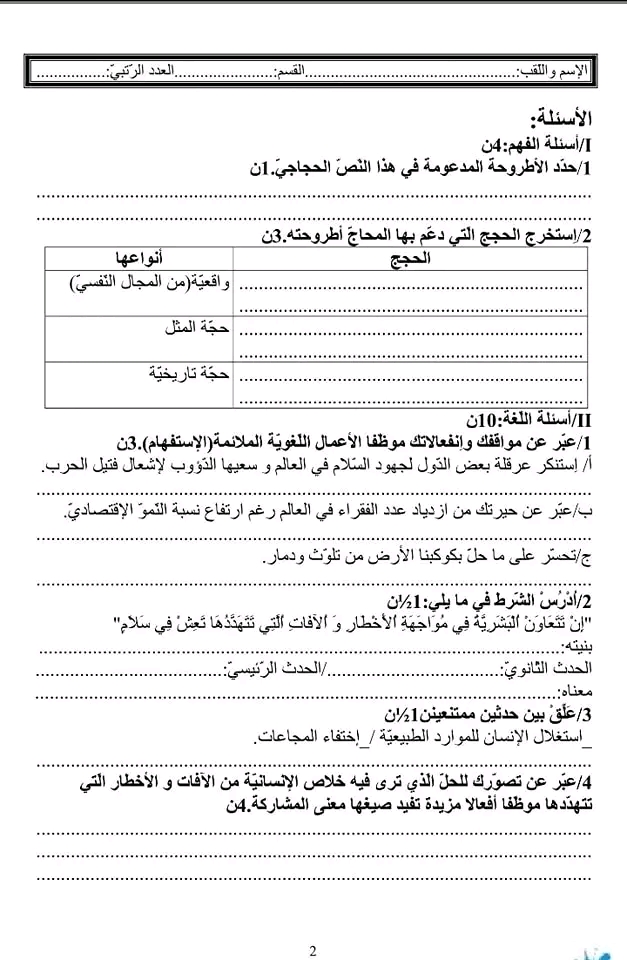 الإختبار الجامع الثاني في مادة العربية. ( التأليفي عدد :2)