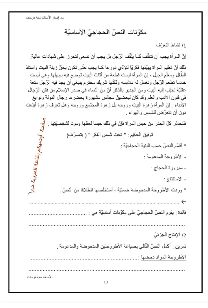 درس في الإنتاج الكتابي للتّاسعة أساسيا: "مكونات النص الحجاجي الأساسيّة". + مرفقا بالإصلاح إنجاز الأستاذة: منية ... Afficher suite