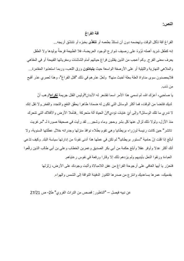فرض مراقبة عدد 2 في دراسة النص بالاصلاح
