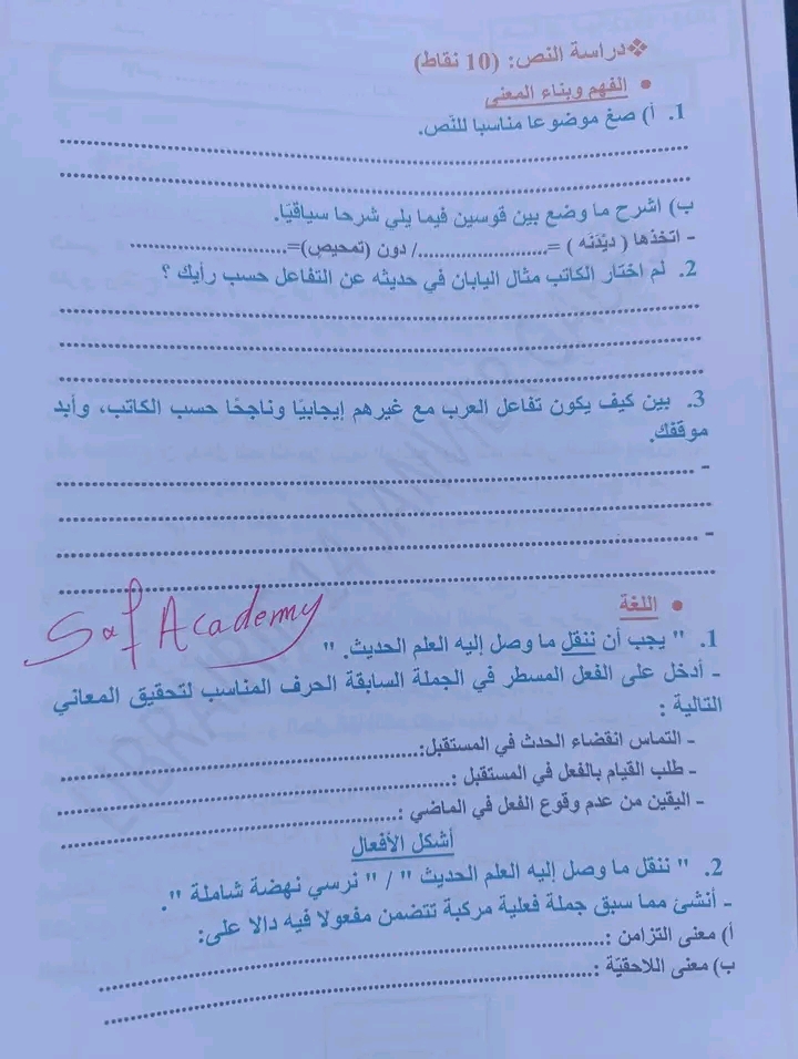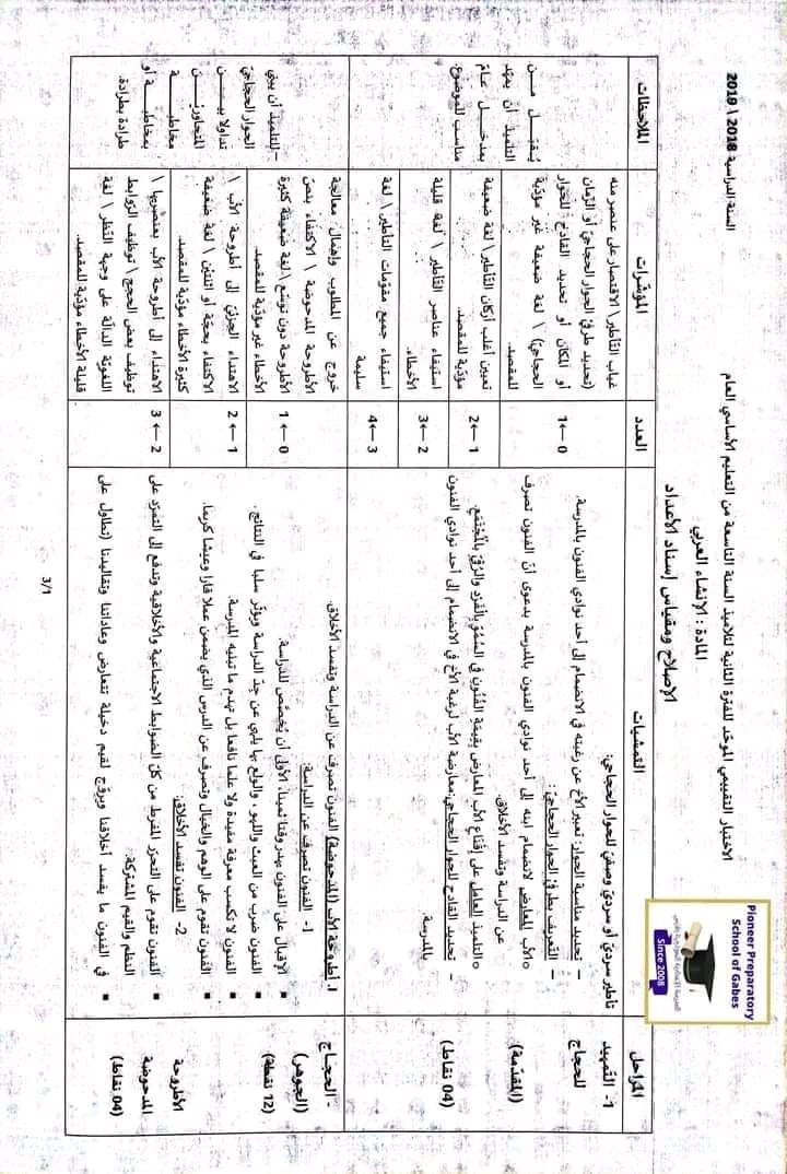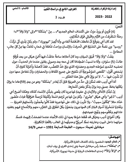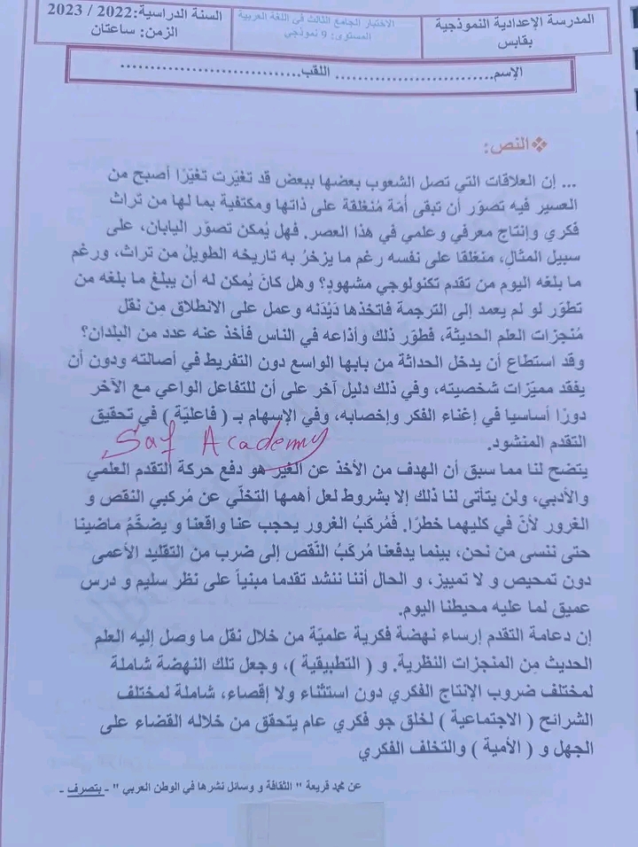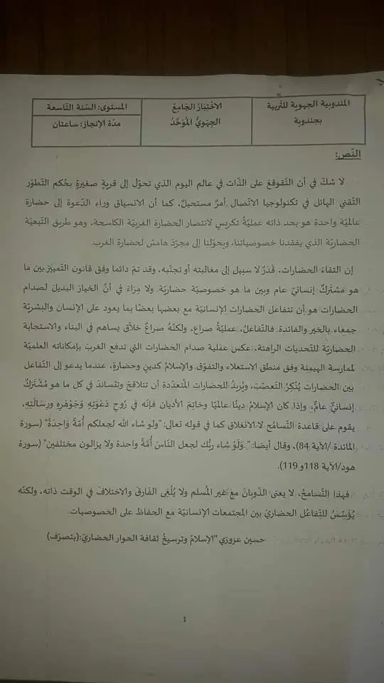 الفرض الجامع عدد 3 مع الإصلاح / محور تفاعل الثقافات / إعداديّة الزهراء بالمهديّة