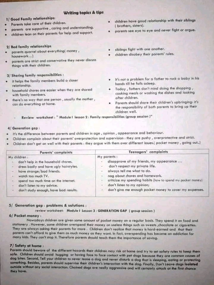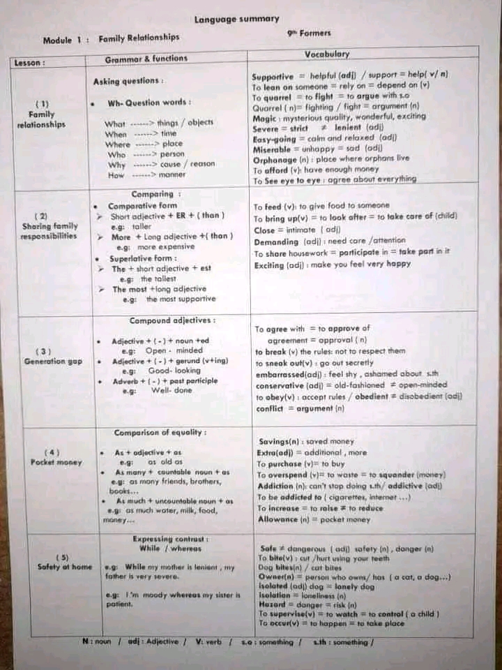Revision module 1 English lesson