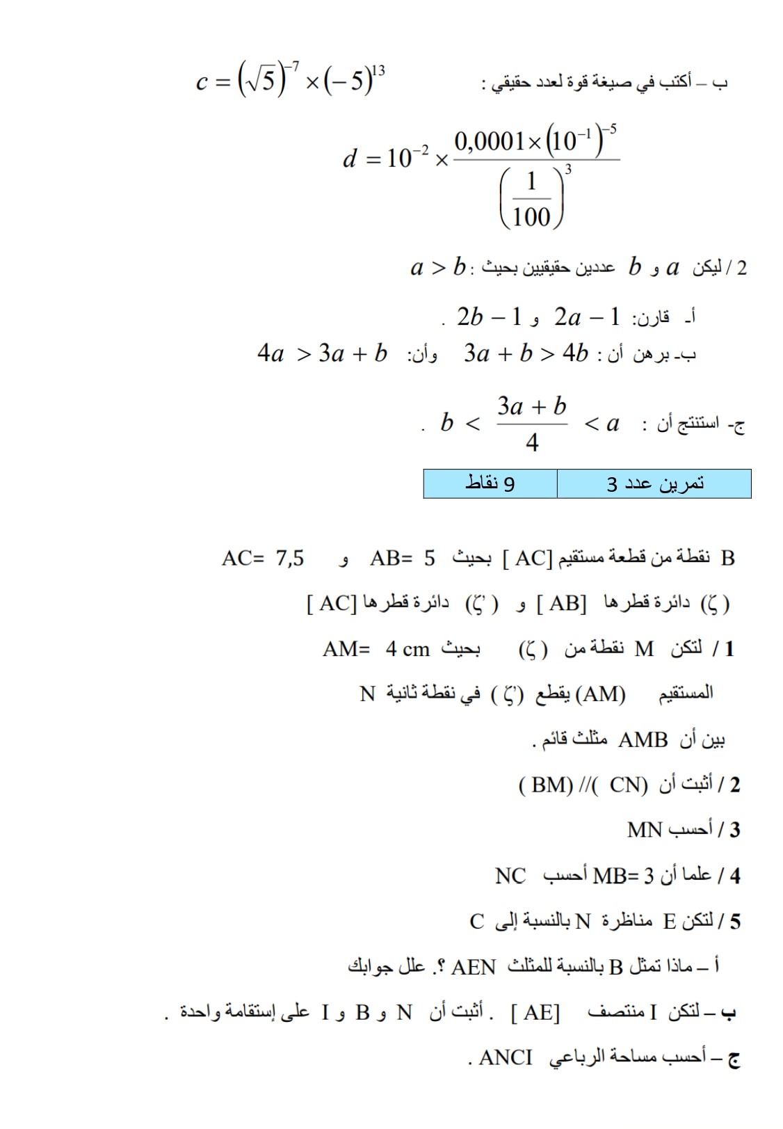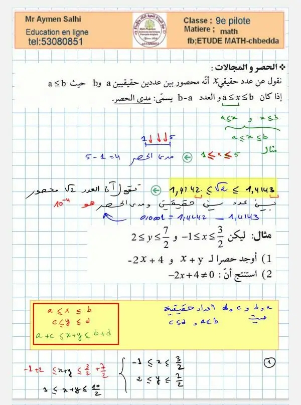 سلسلة عدد 4 مستوى 9 أساسي