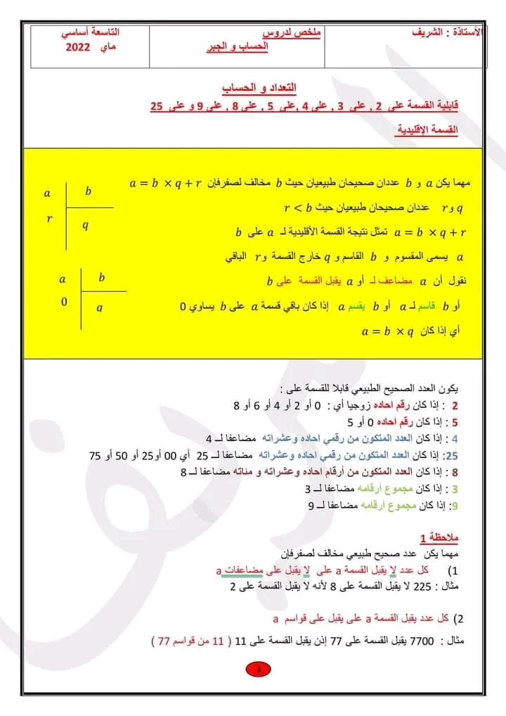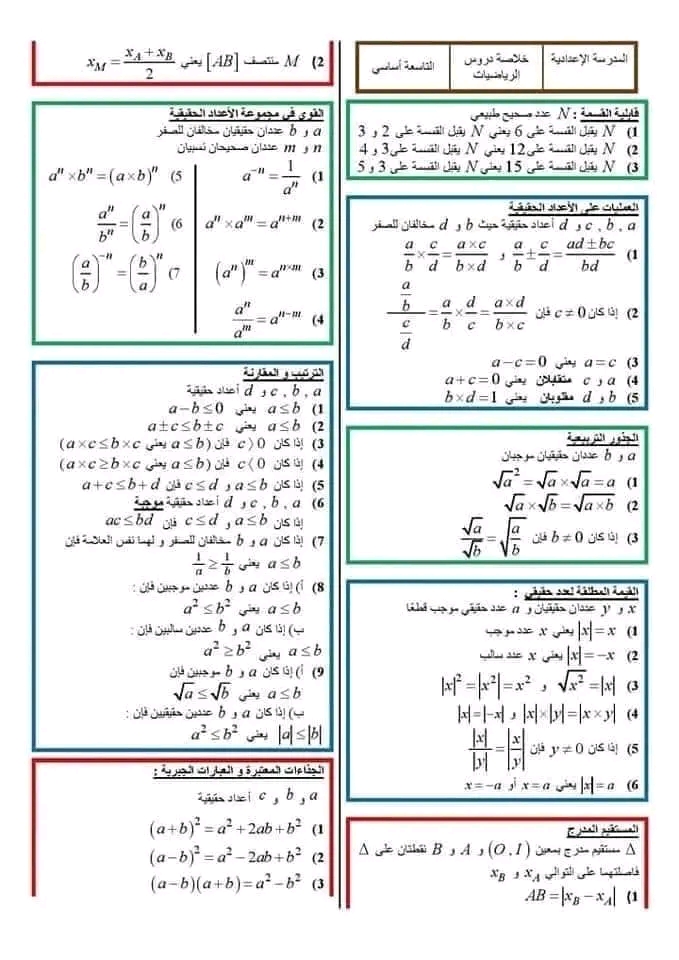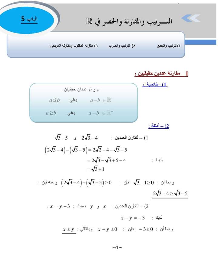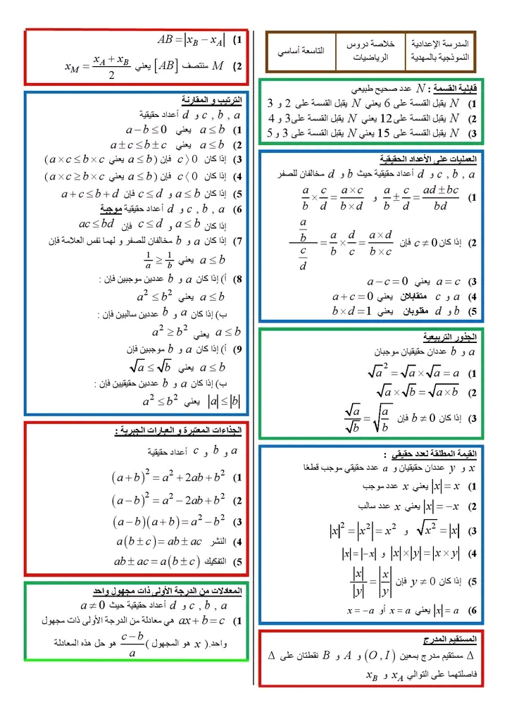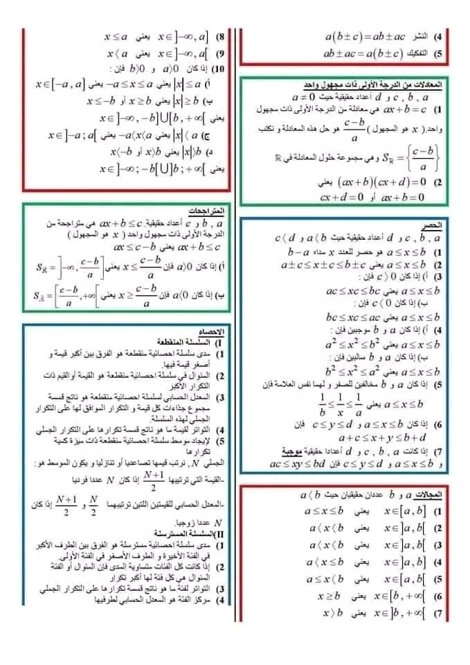 ملخص درس المعادلات والمتراجحات من الدرجة الاولى بمجهول واحد