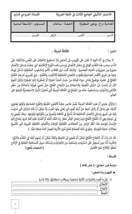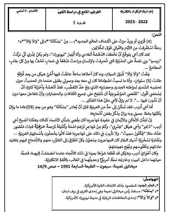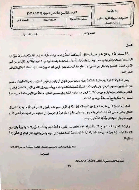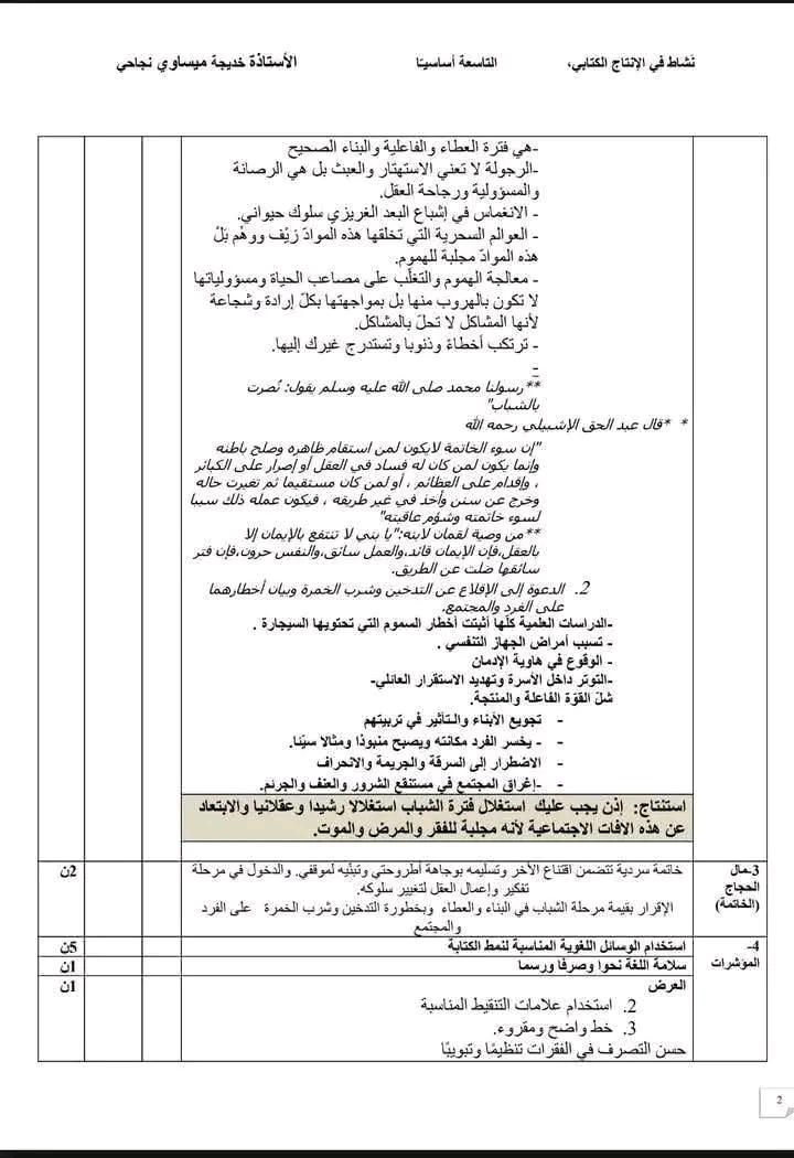 **محورالمرأة في المجتمع التاسعة اساسي