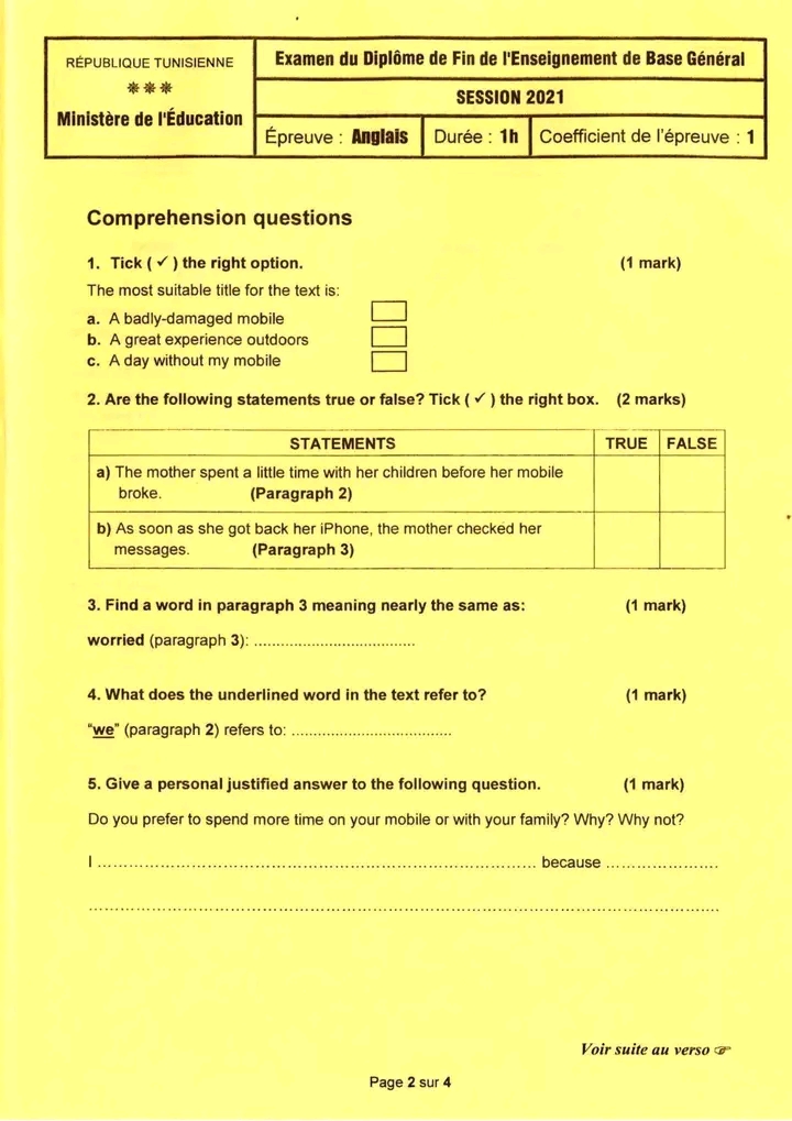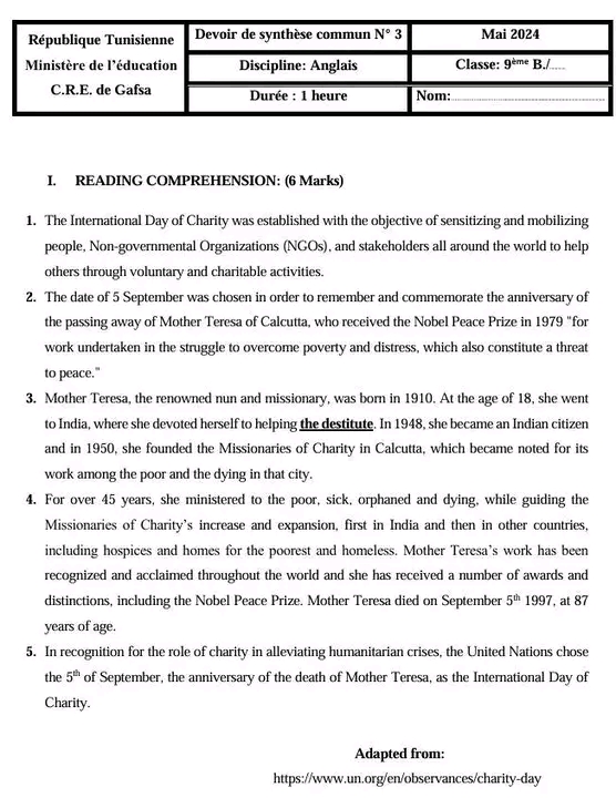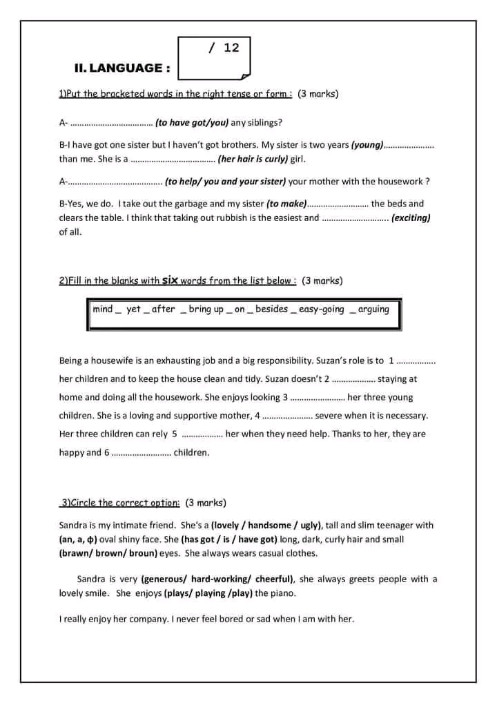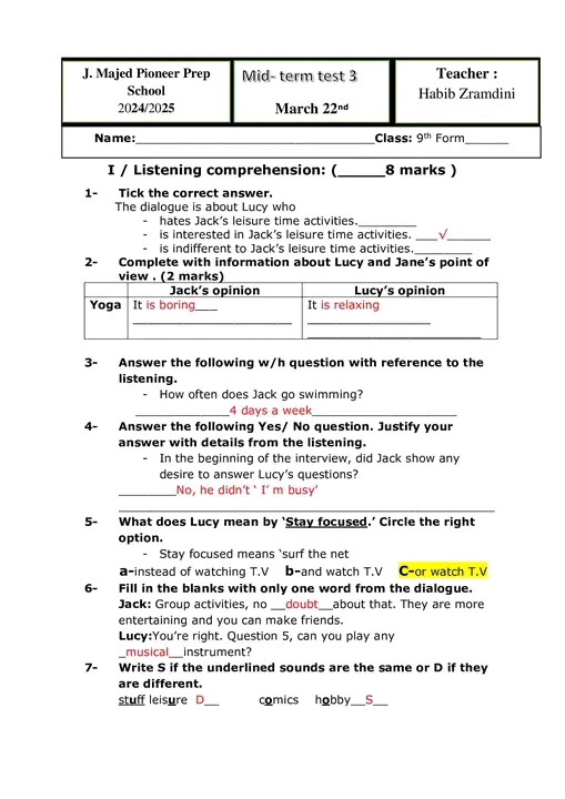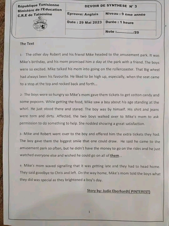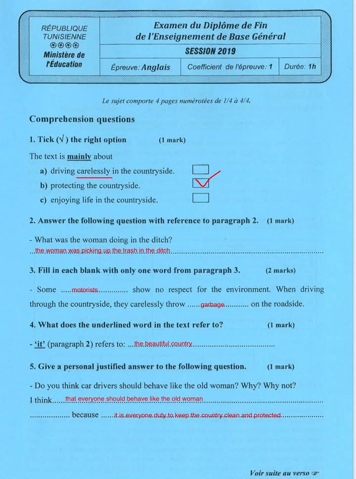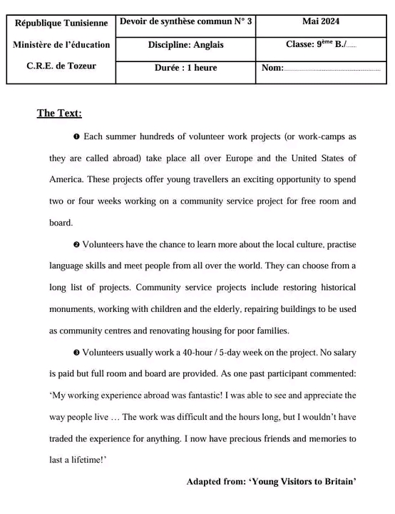 9th form end term n°3