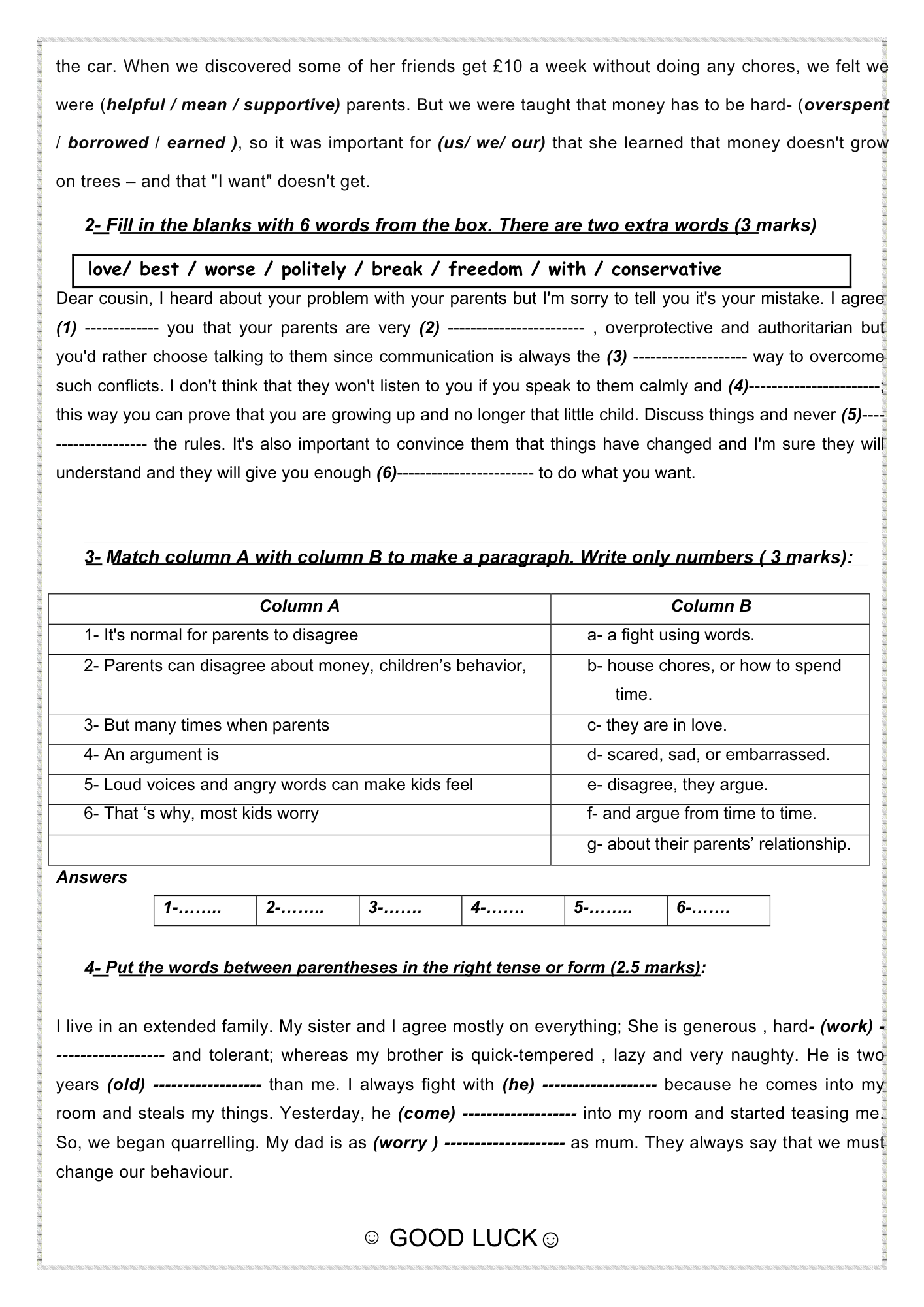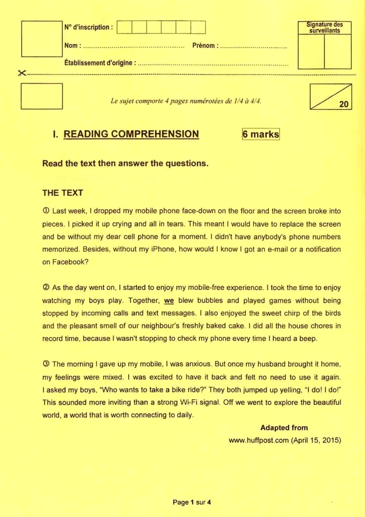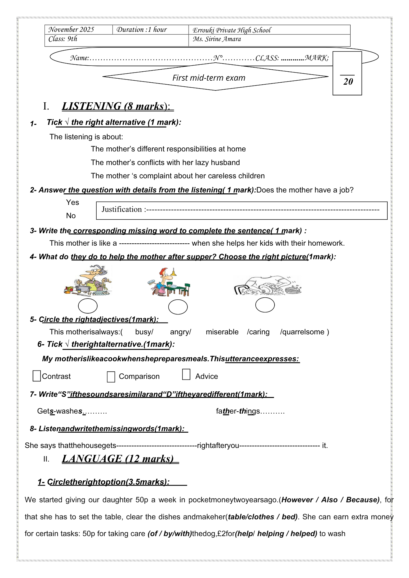 9th form end term n°3