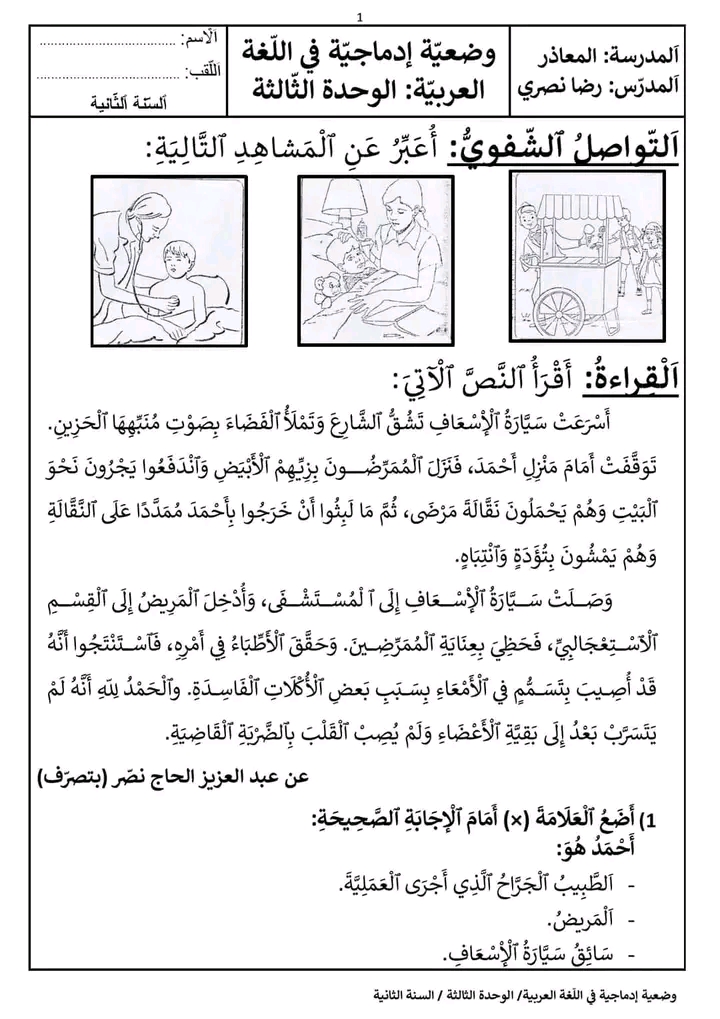 إدماج الوحدتين الثالثة و الرابعة للسنة ثانية ...عمل ممتاز للأستاذ رضا نصري ...مشكور