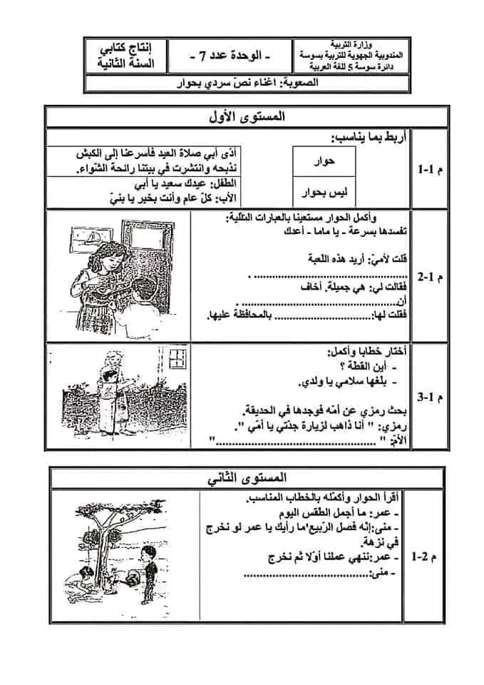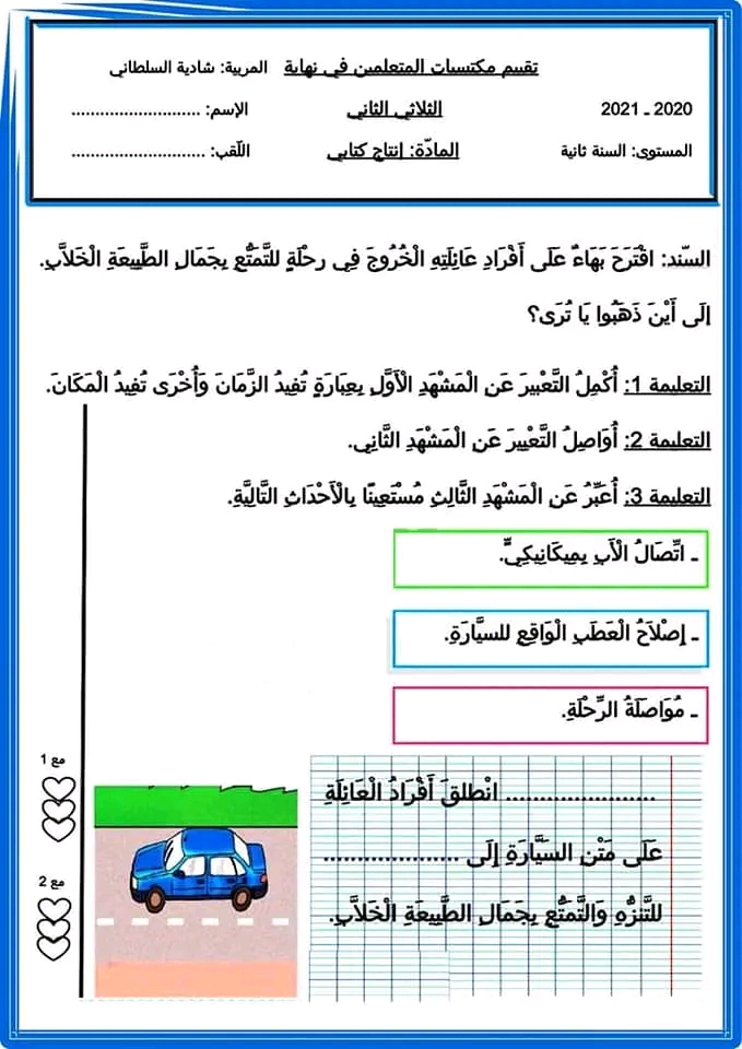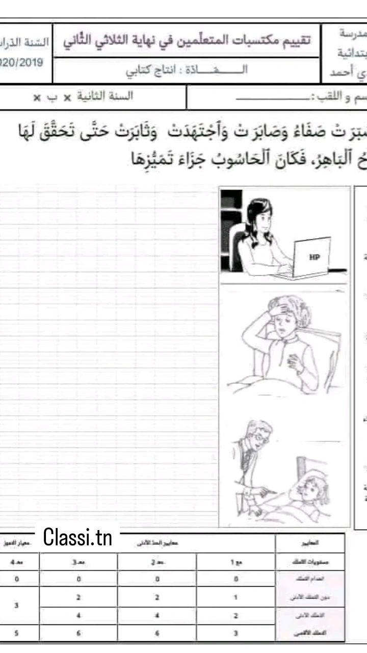 تقاييم إنتاج كتابي الثلاثي الثاني سنة ثانية