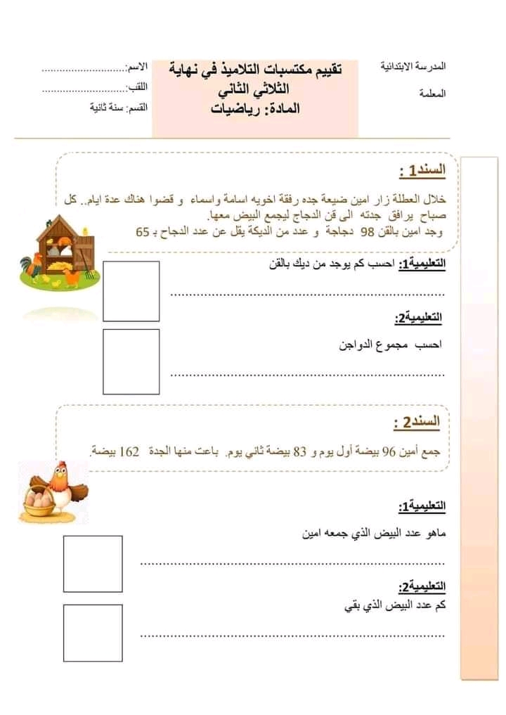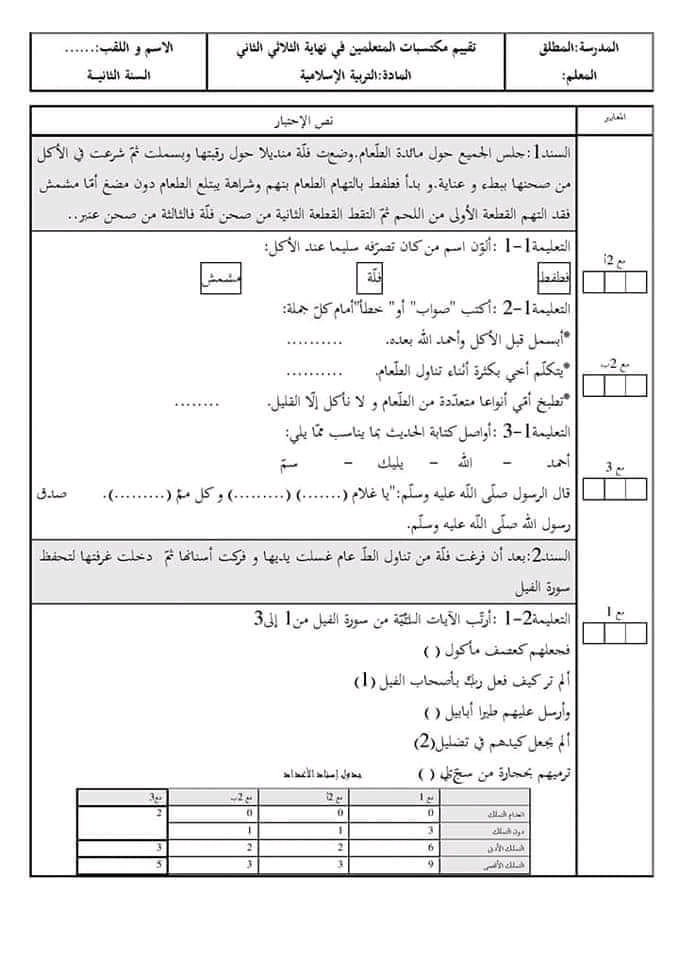 اختبارات و تقاييم جميع المواد سنة ثانية