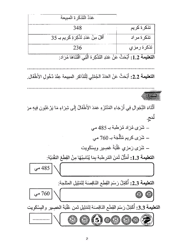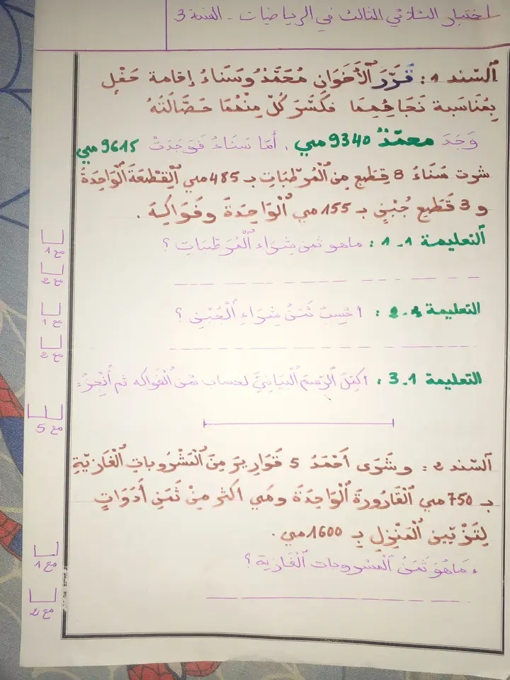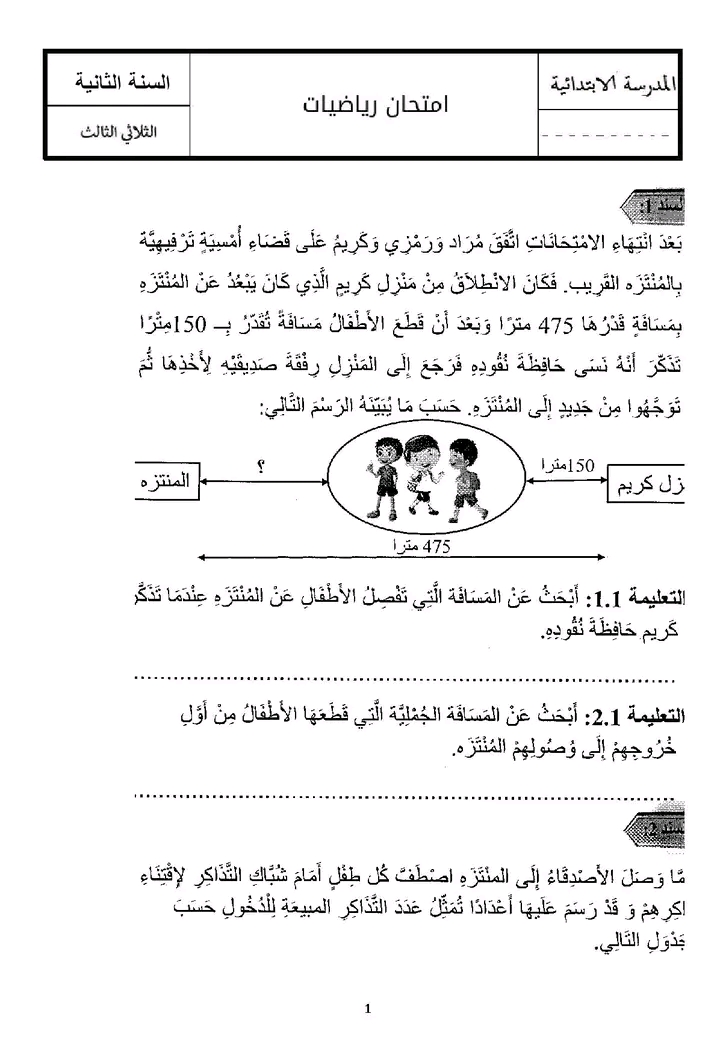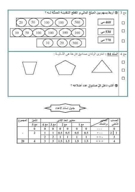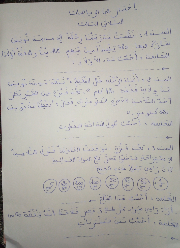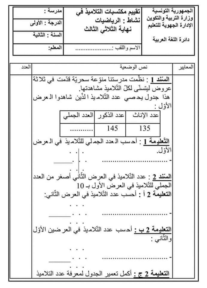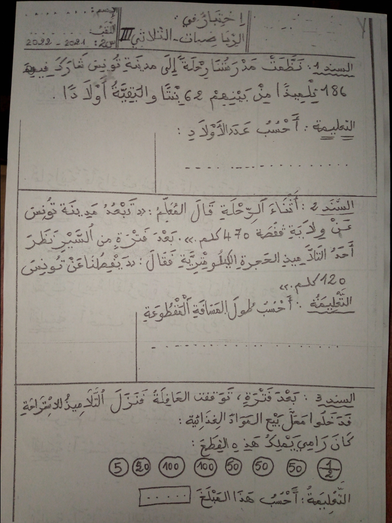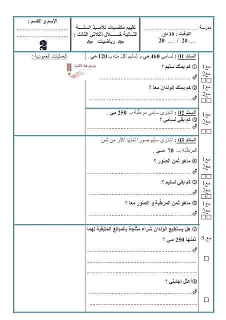 اختبار الثلاثي الثالث في الرياضيات س2