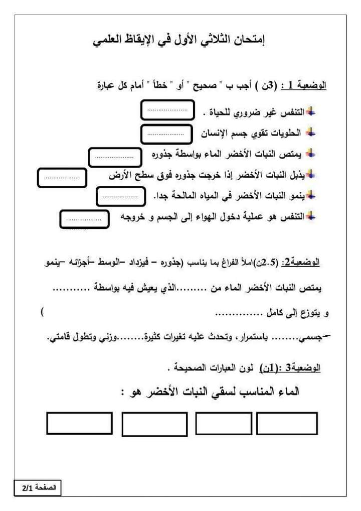 امتحانات ايقاظ علمي الثلاثي الأول سنة ثانية