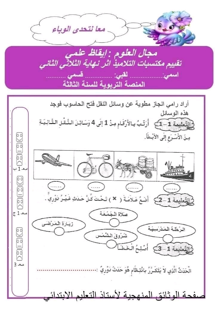 إمتحان إيقاظ علمي الثلاثي الثاني مع بحث🌹