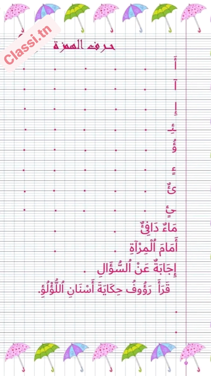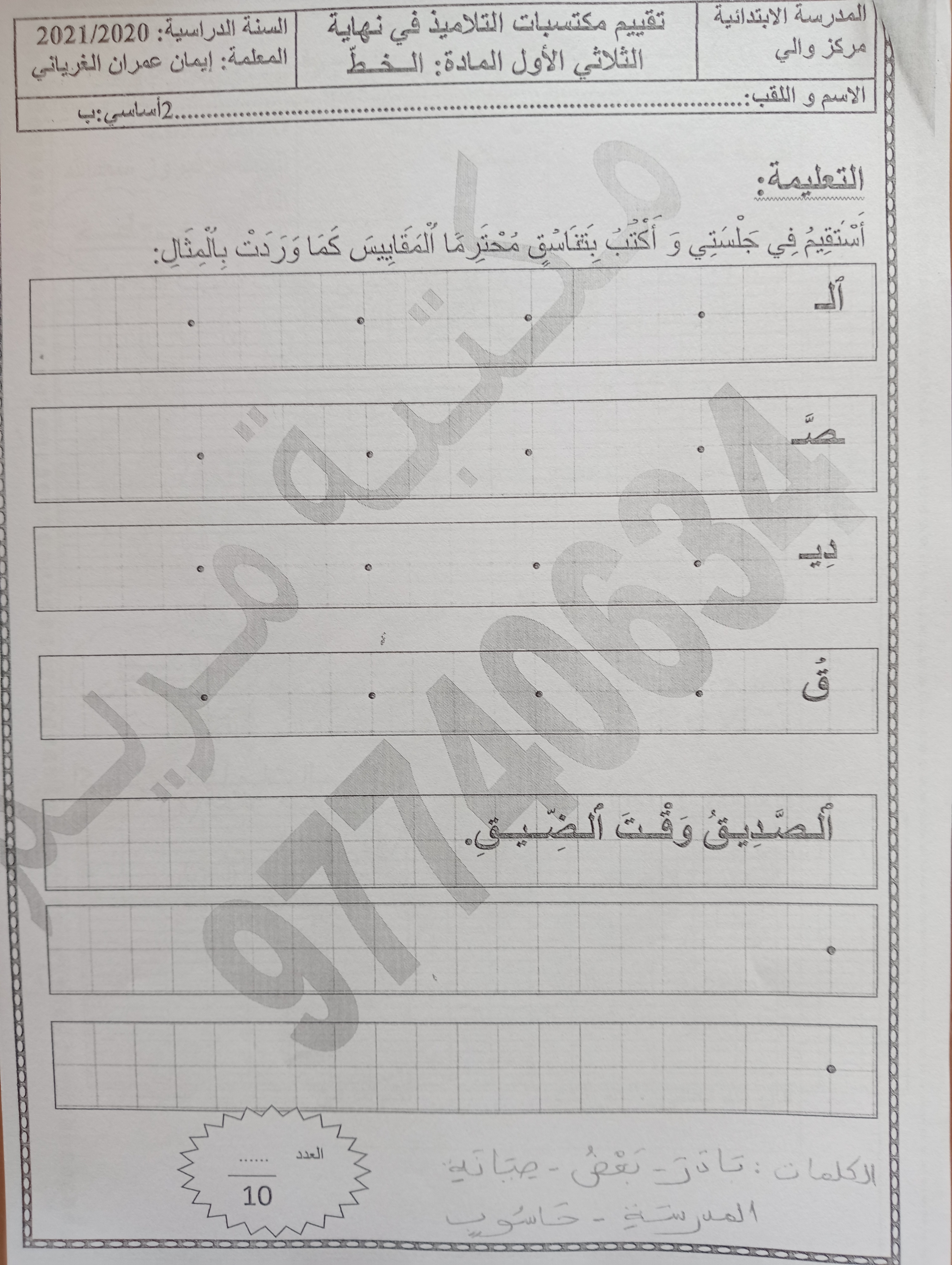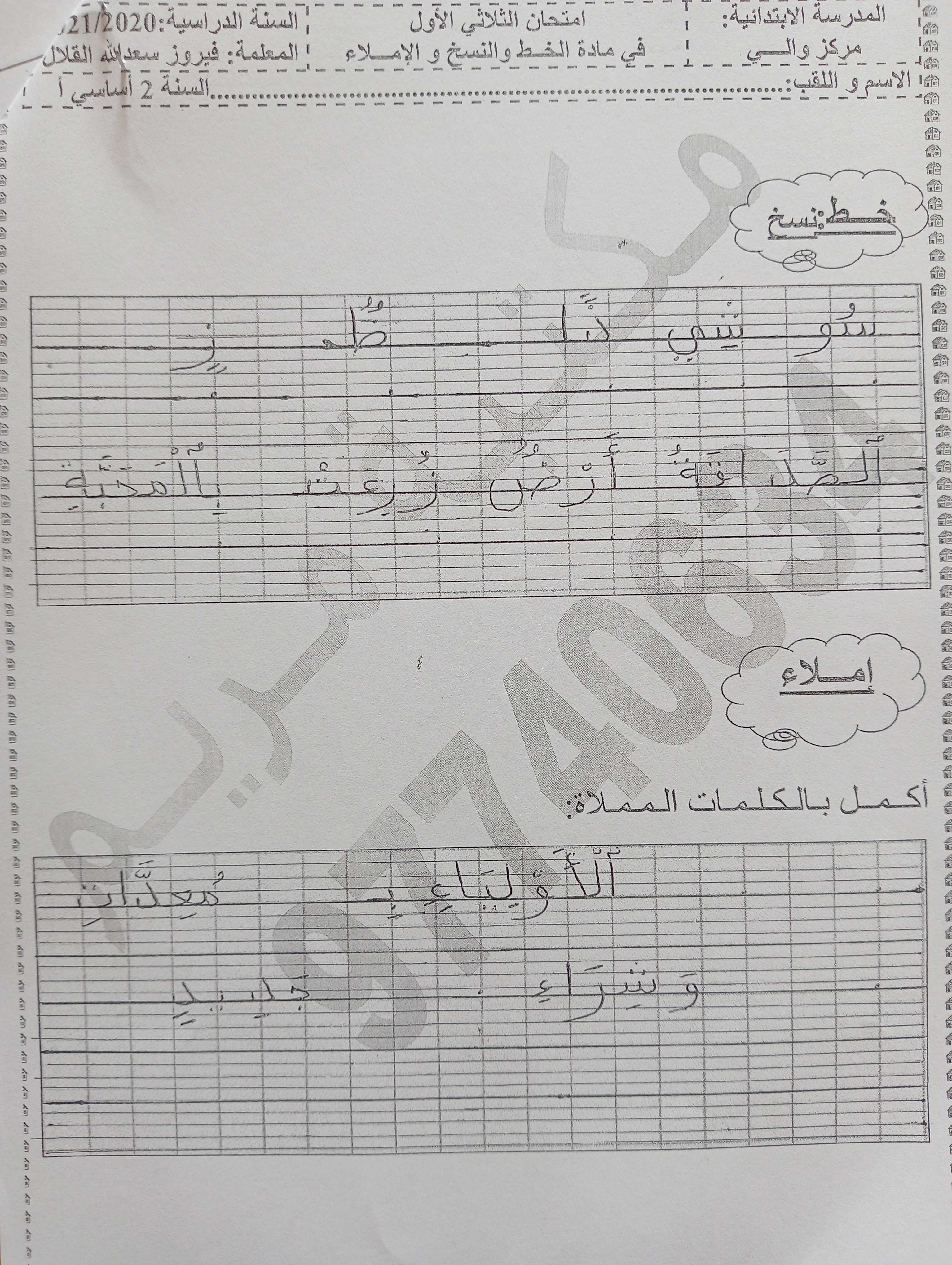 امتحانات خط واملاء الثلاثي الأول سنة ثانية
