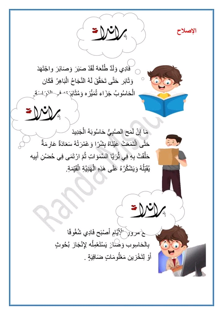 إنتاج كتابي حول الحاسوب مع الإصلاح