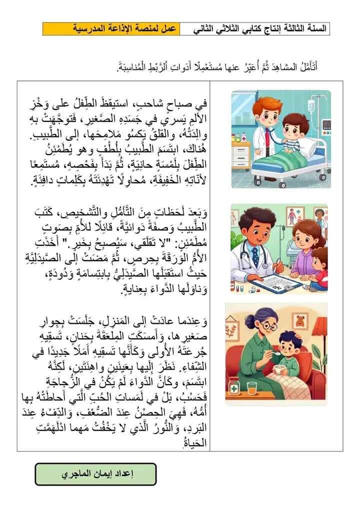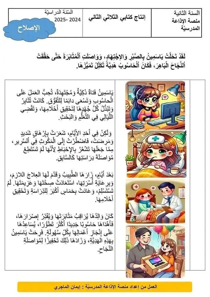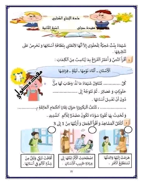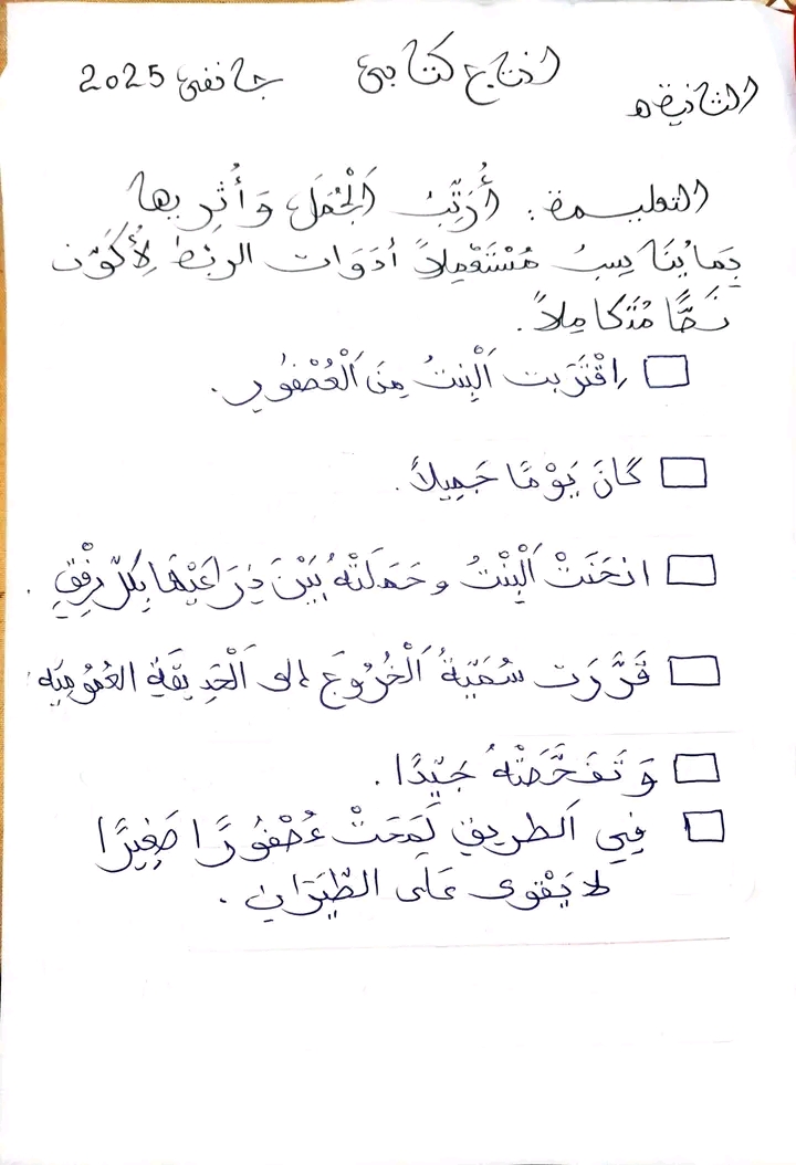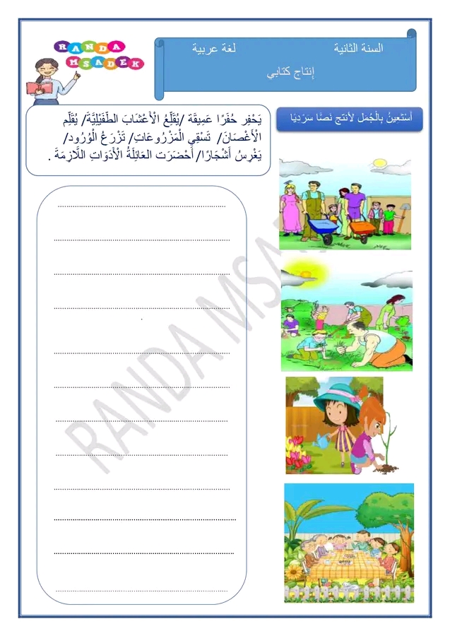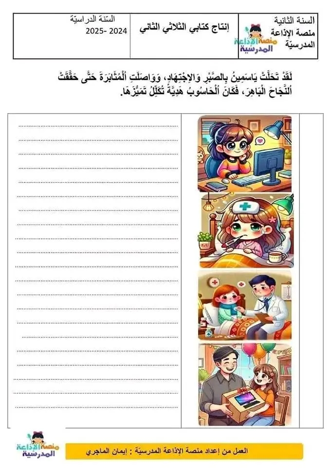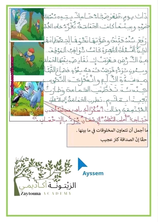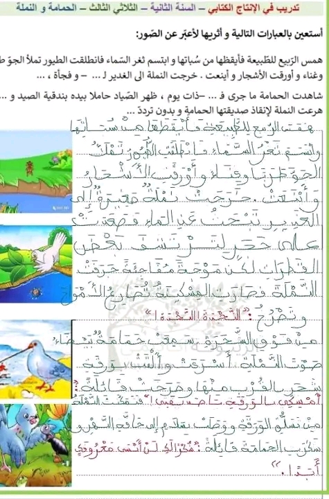 🌿تدريب انتاج كتابي لمستوى سنة ثانية "الحمامة🕊️ و النملة"🐜🌿