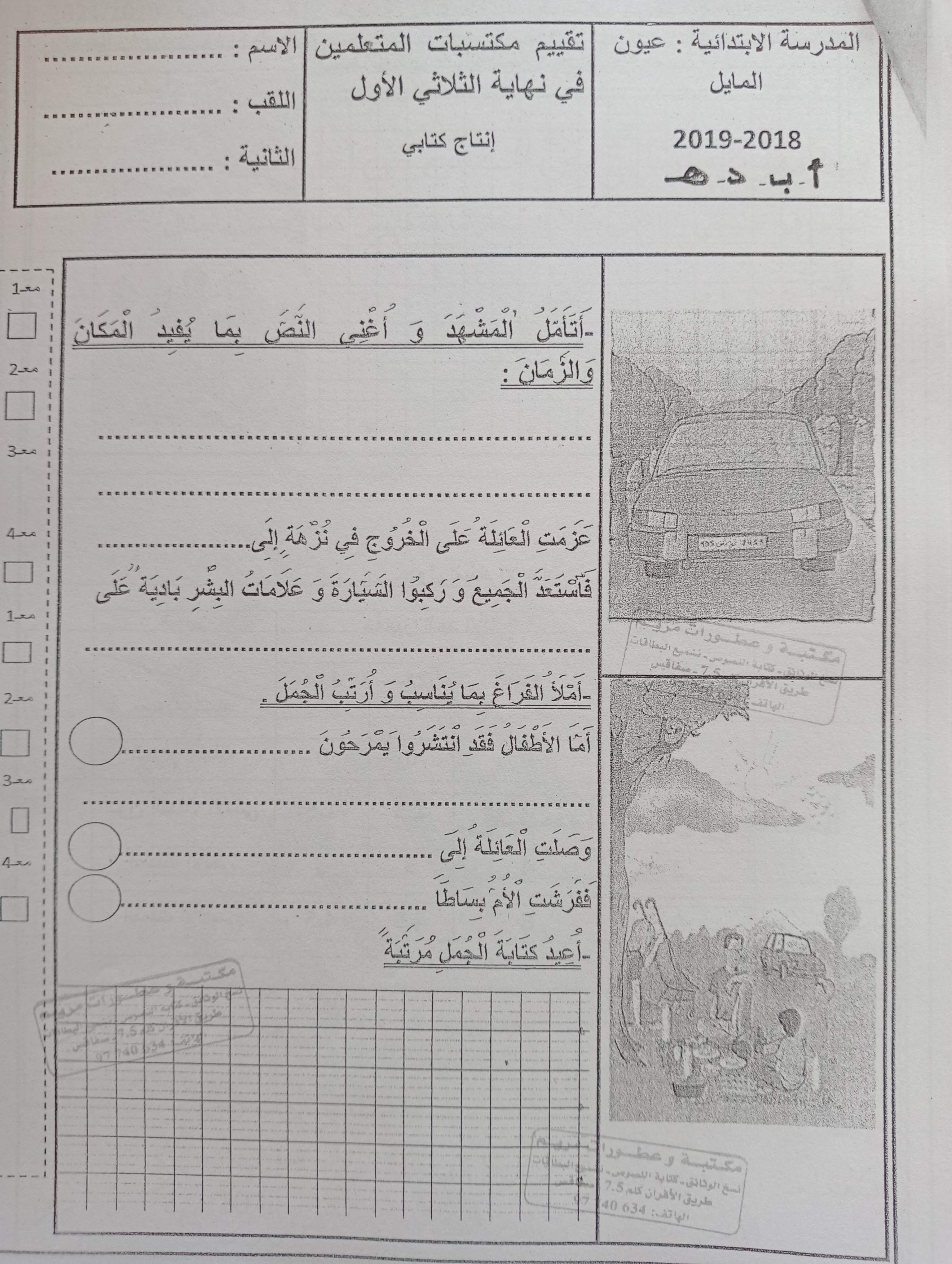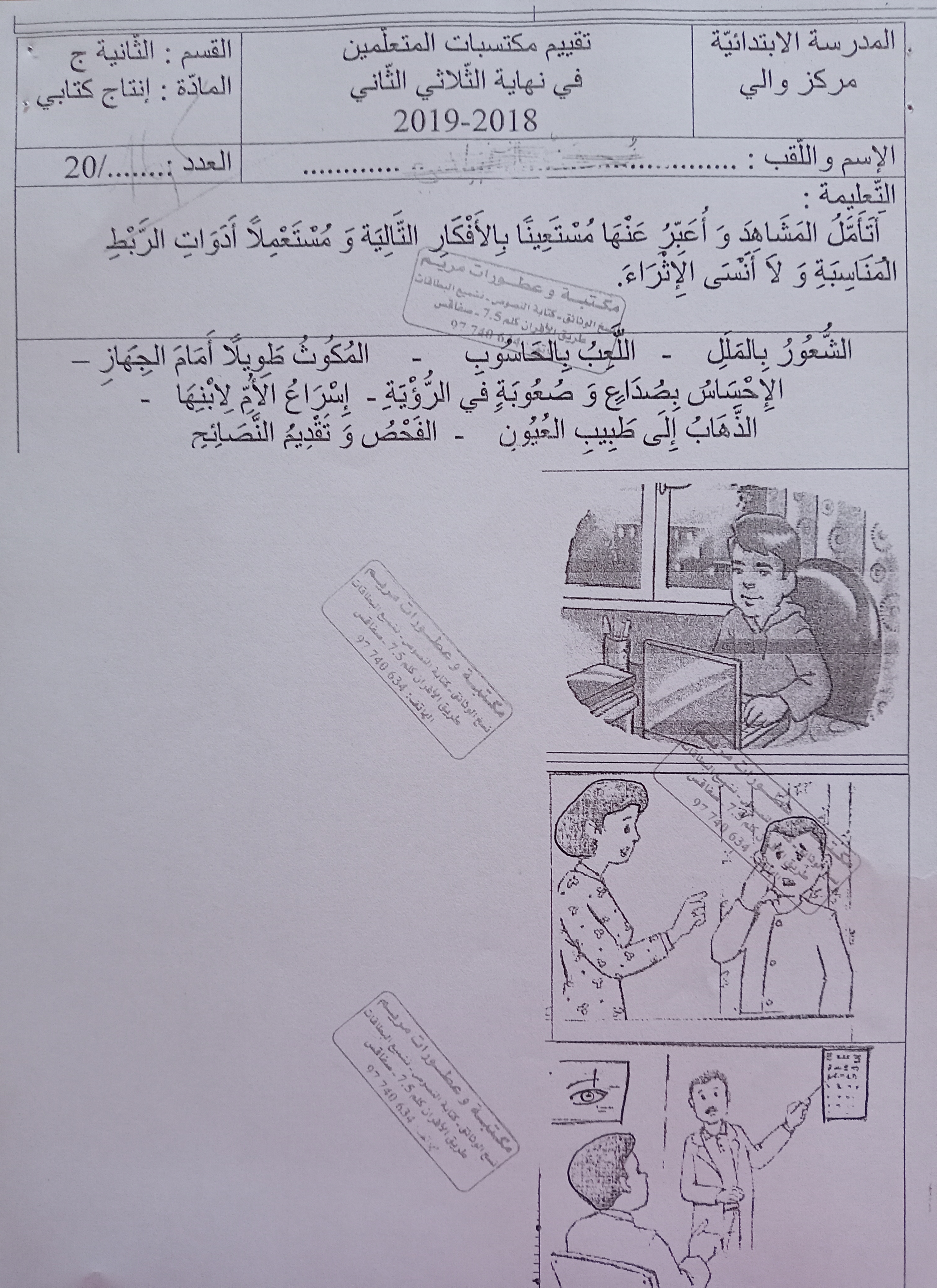 امتحانات إنتاج كتابي الثلاثي الأول سنة ثانية