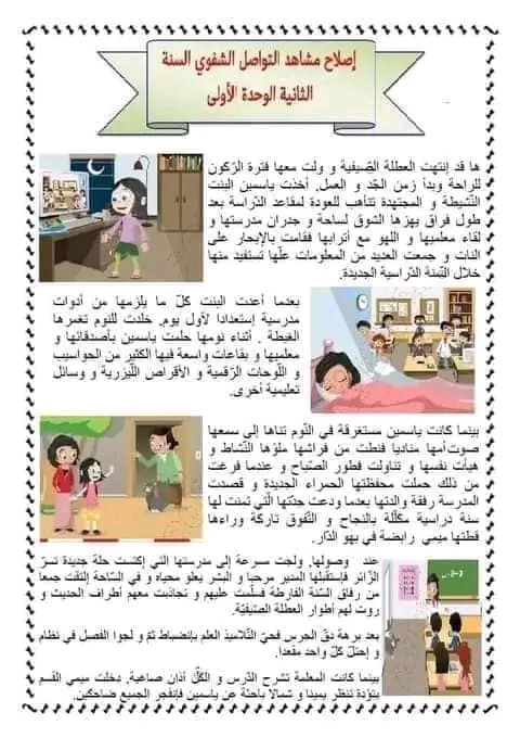 تواصل شفوي مع الاصلاح خاص بالوحدة الثالثة والرابعة السنة الثانية
