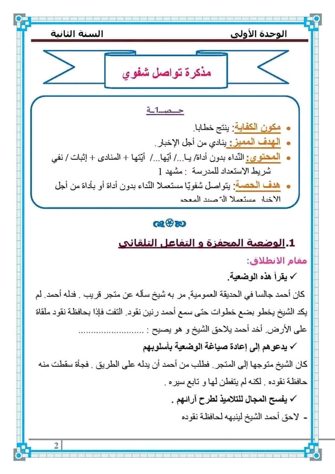 🔴 تواصل شفوي لتلاميذ سنة ثانية ابتدائي 2⃣📋✔️