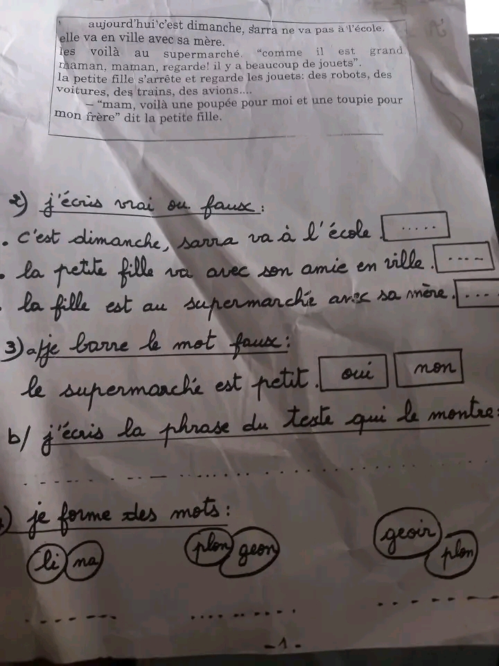 تقييم في مادة الفرنسية مع الاصلاح السنة الثانية