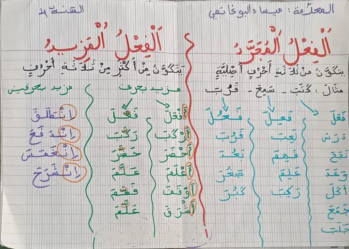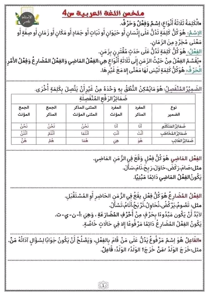 قواعد لغة الثلاثي الاول سنة الرابعة