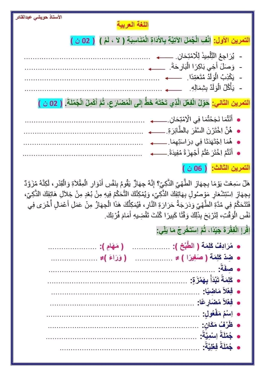 قواعد لغة سنة رابعة
