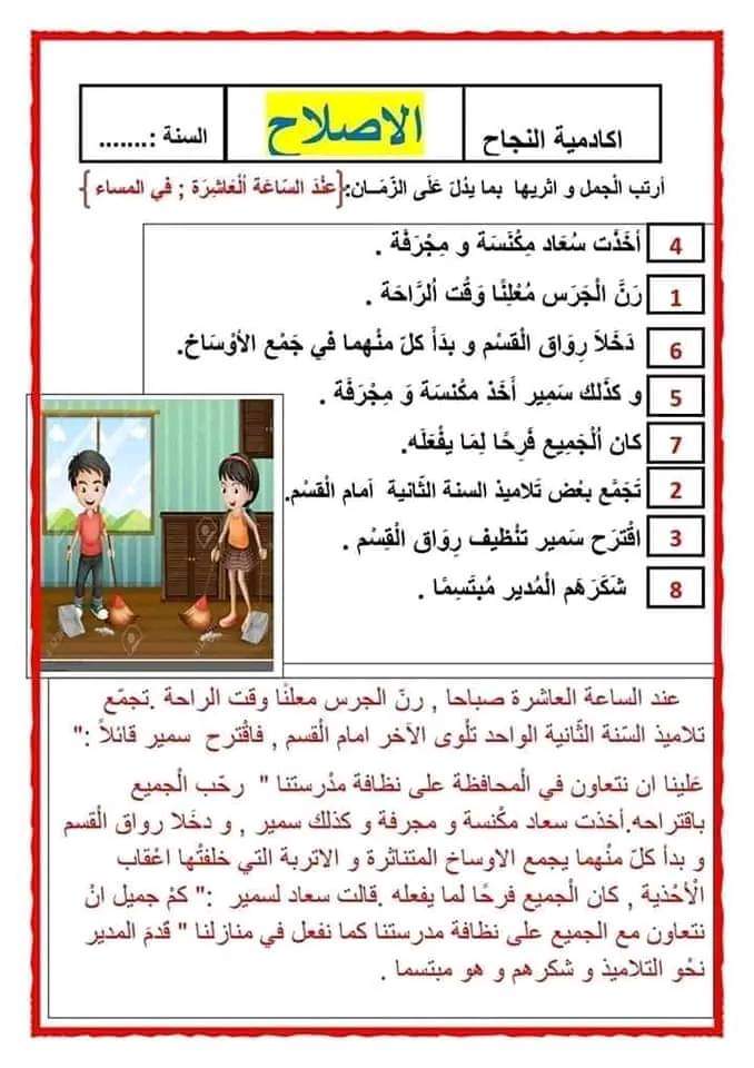 تمارين انتاج كتابي بالاصلاح سنة رابعة