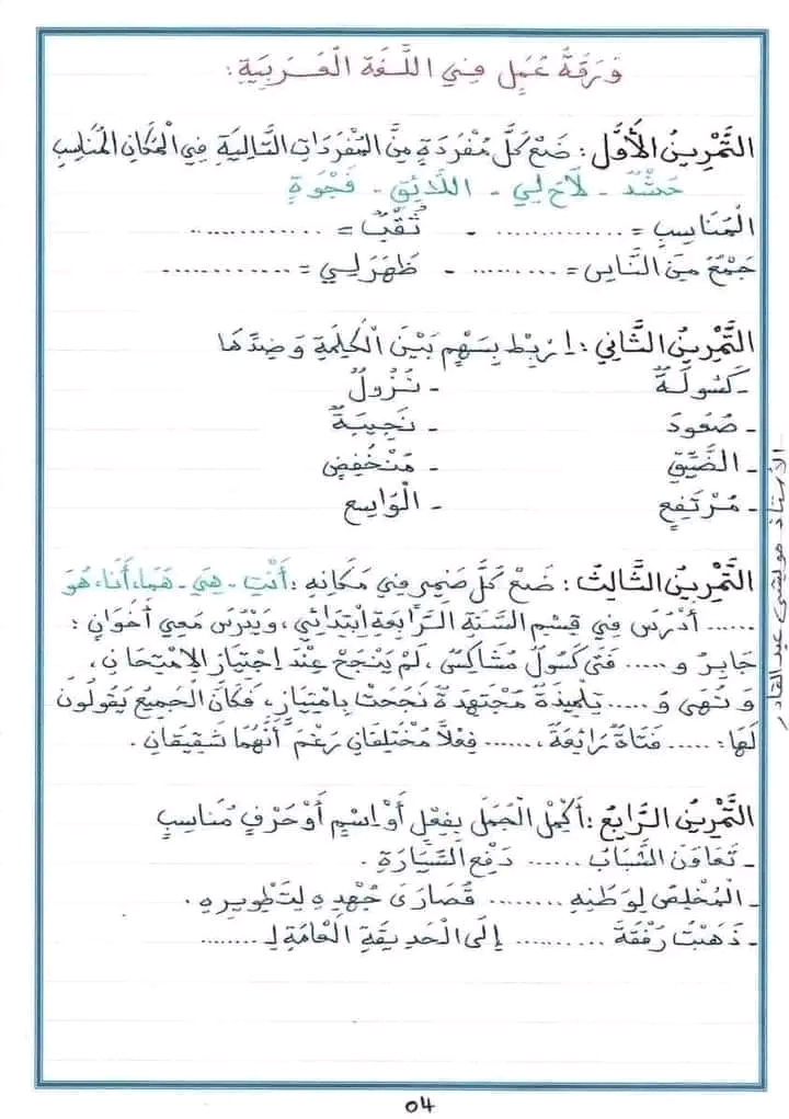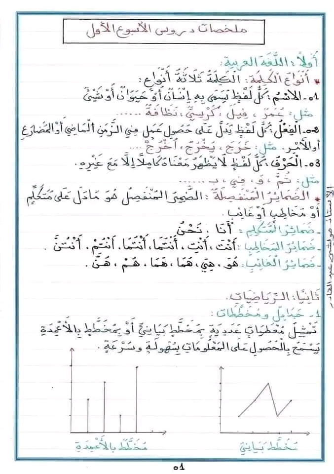 ملخصات الدروس الأولى للسنة الرابعةإبتدائي